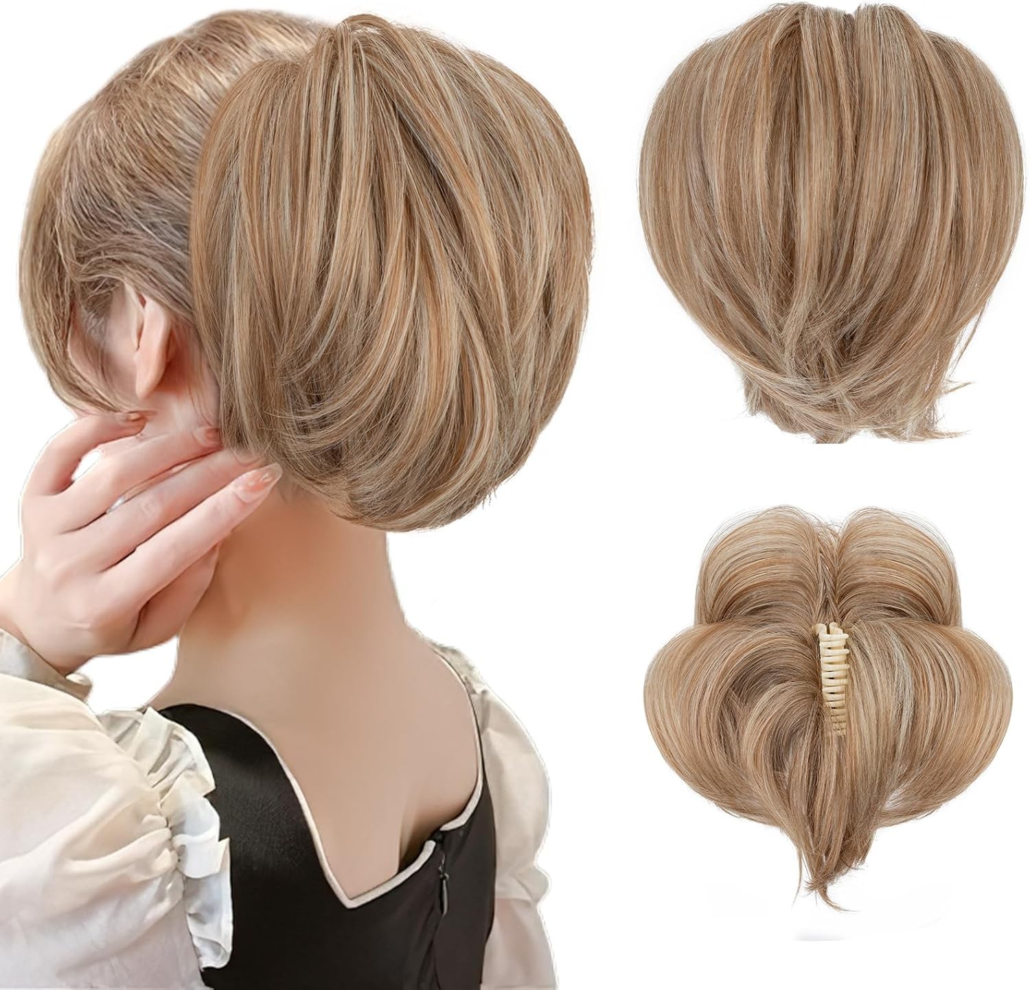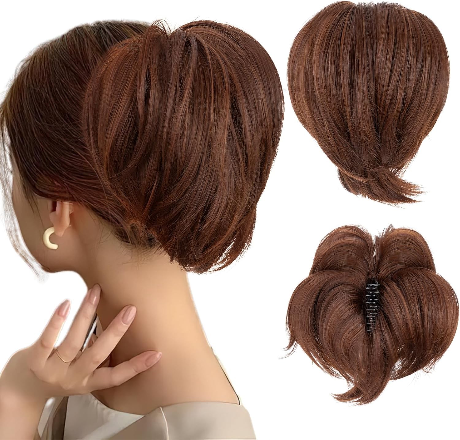 Claw Clip Short Ponytail Extension Messy Bun Hair Piece, Bendable Metal Wire Fa
