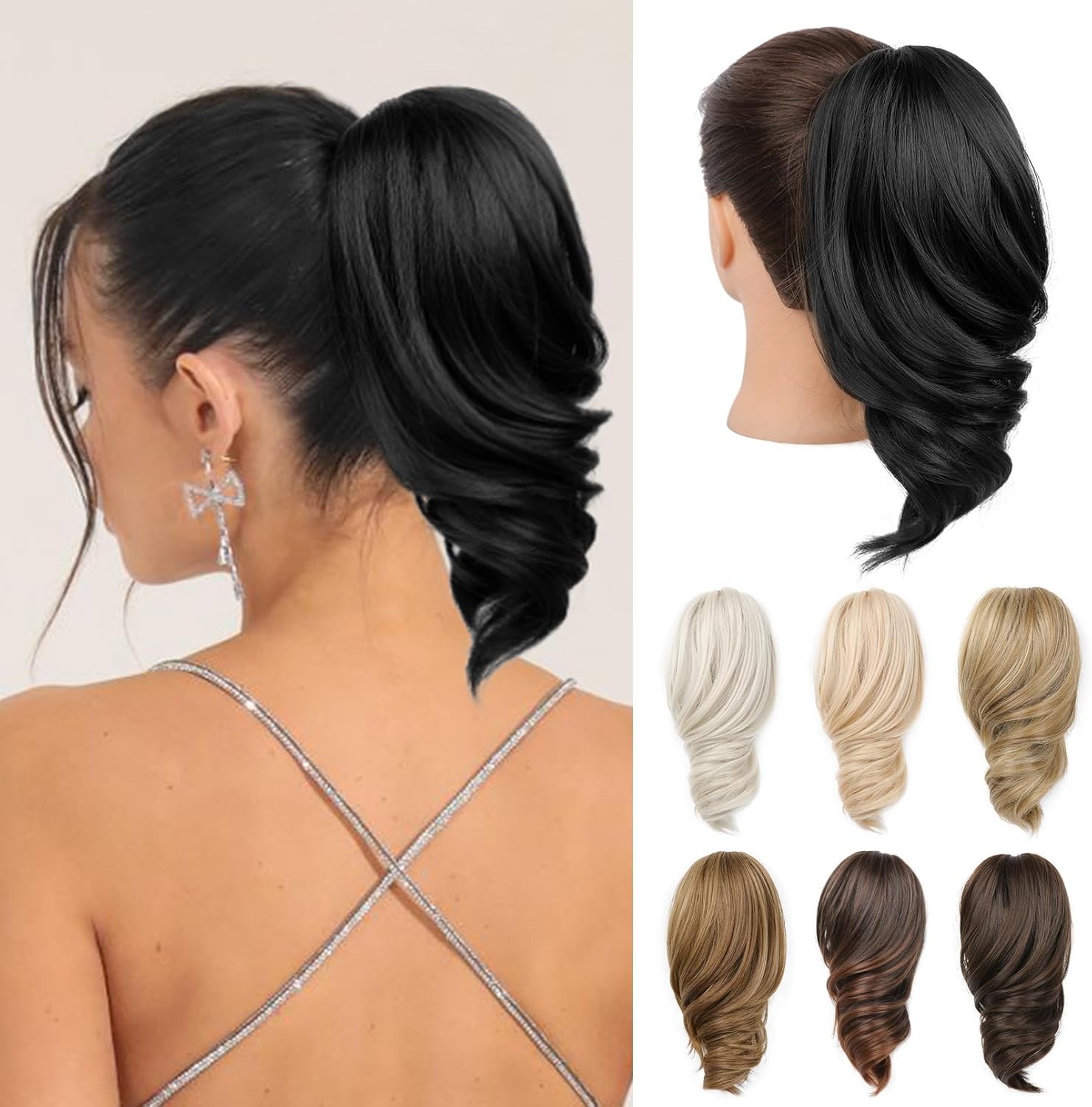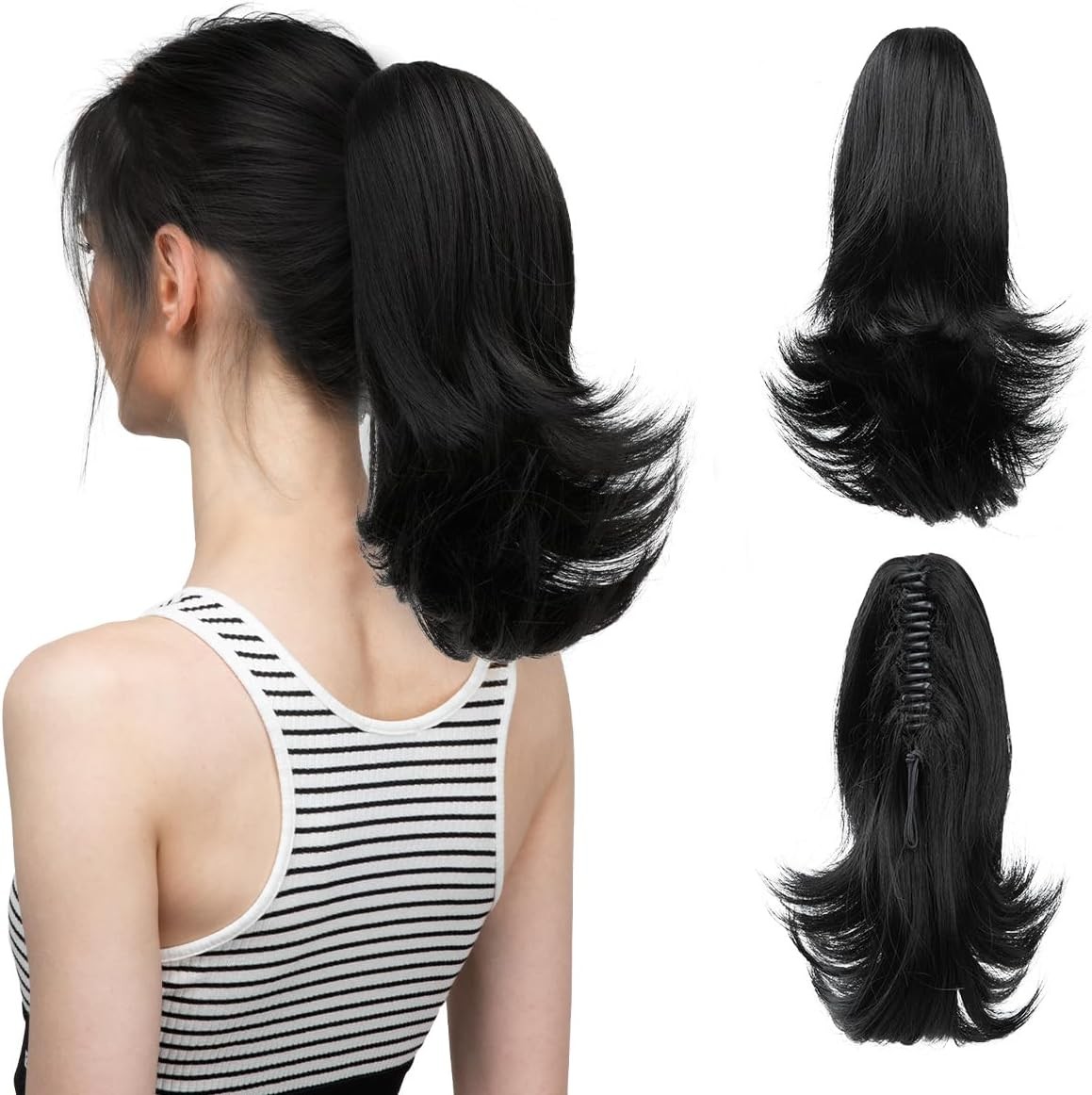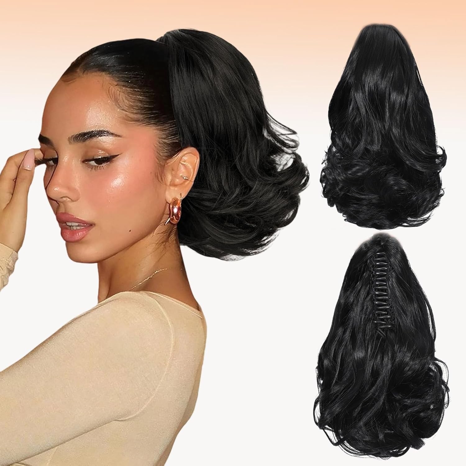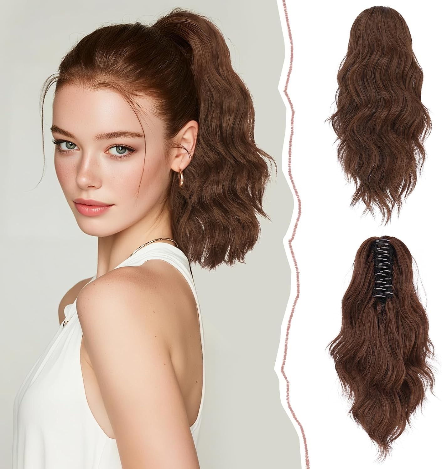 Claw Clip Ponytail Hair Extensions - 12 Inch Short Ponytail Extension, Wavy Pon