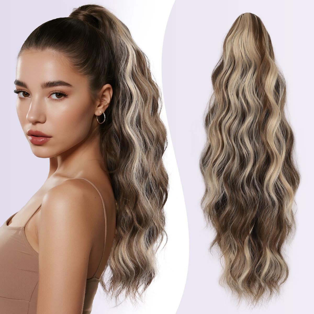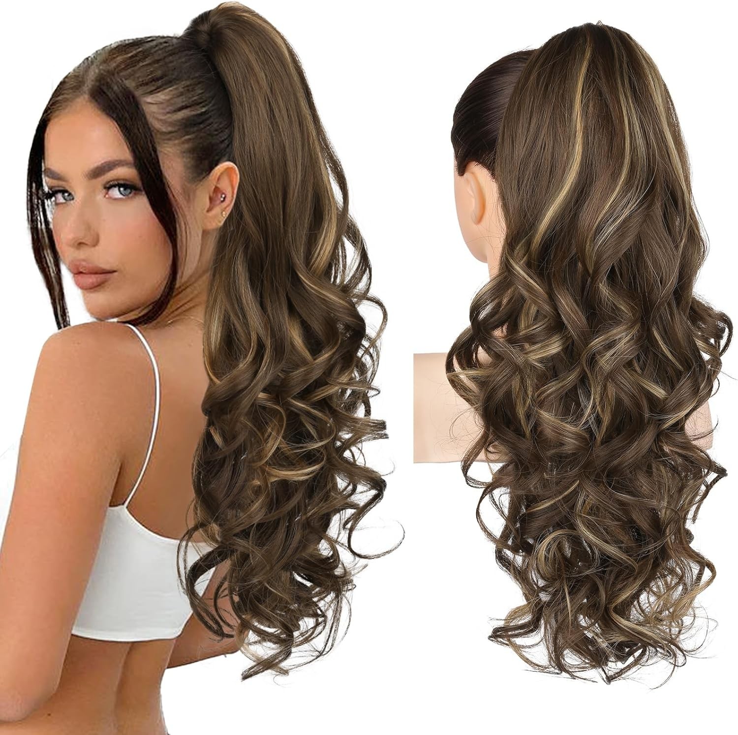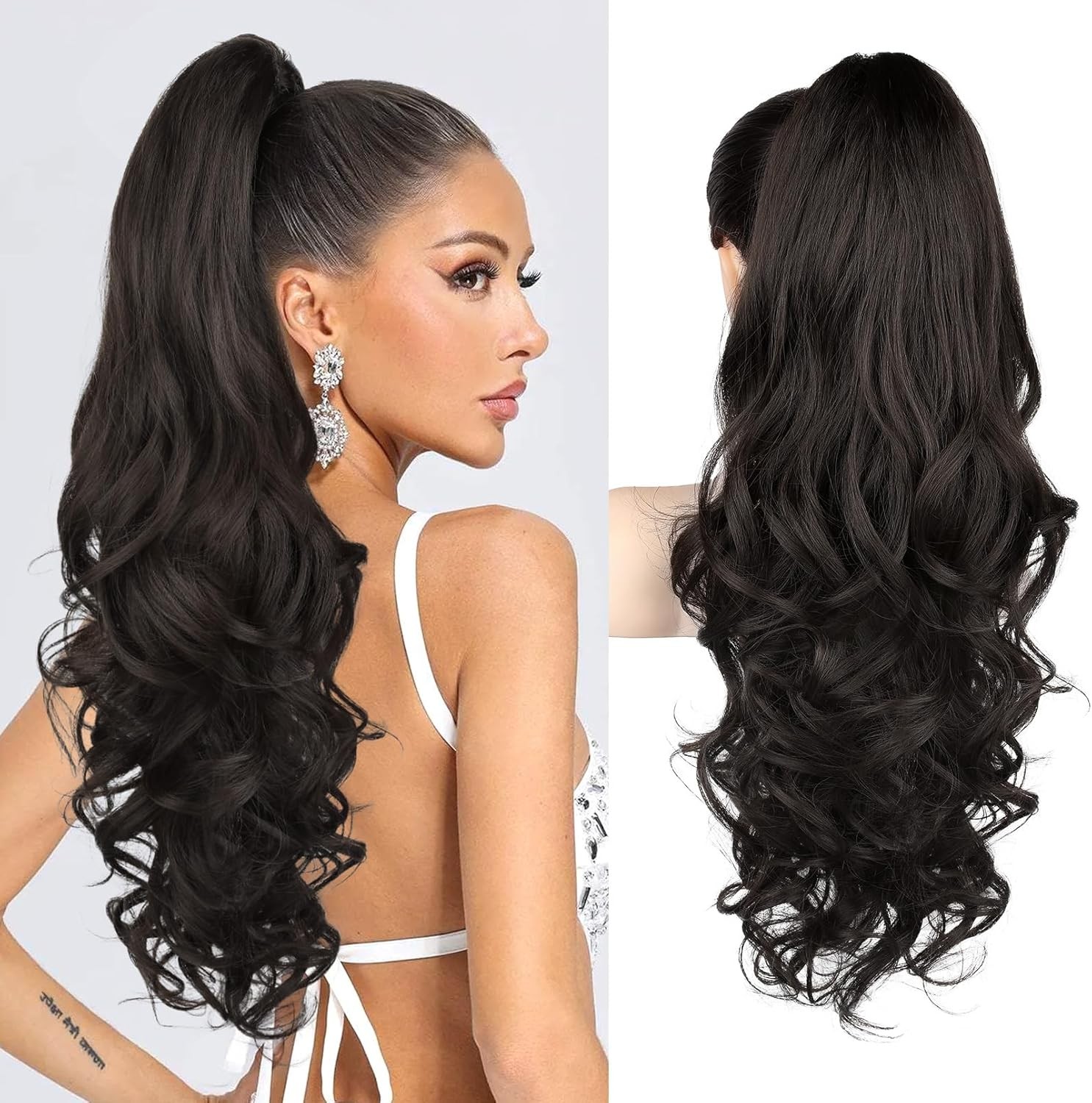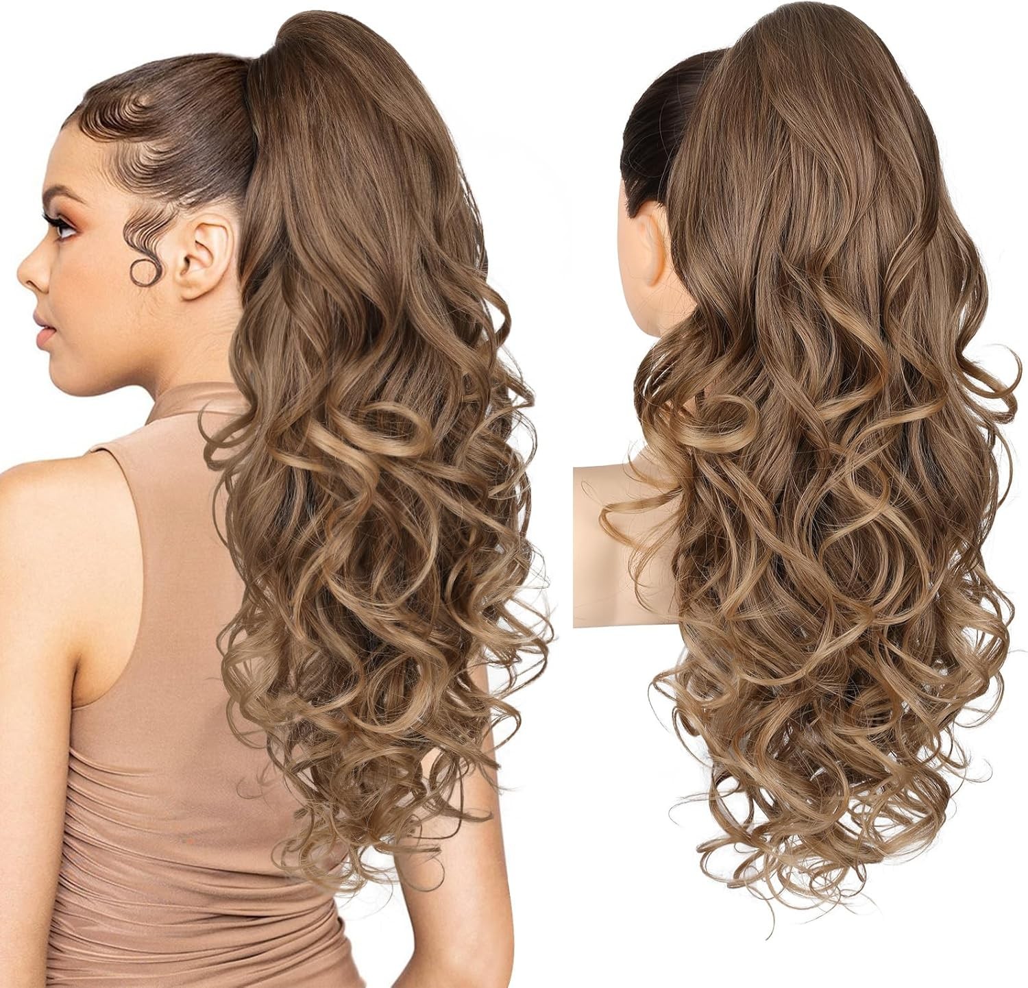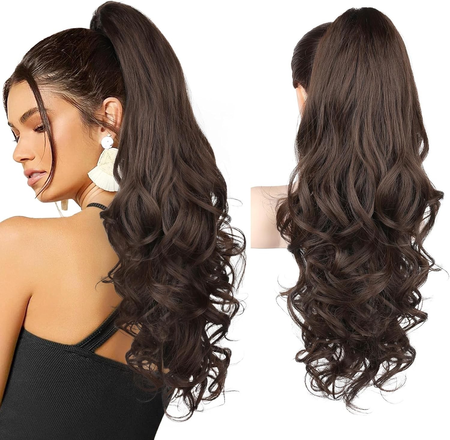 Flufymooz 26" Ponytail Extension, Long Wavy Curly Claw Clip in Ponytail Hair Ex