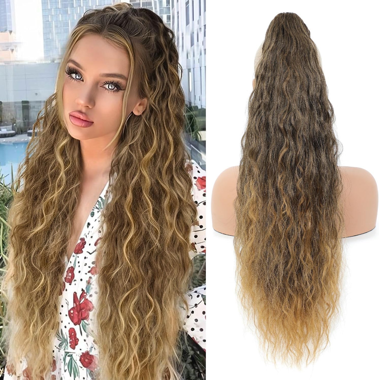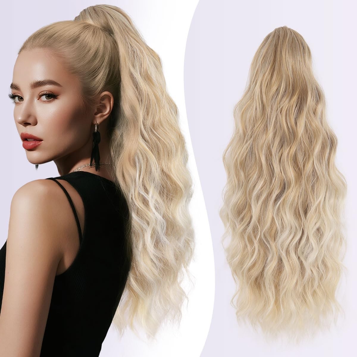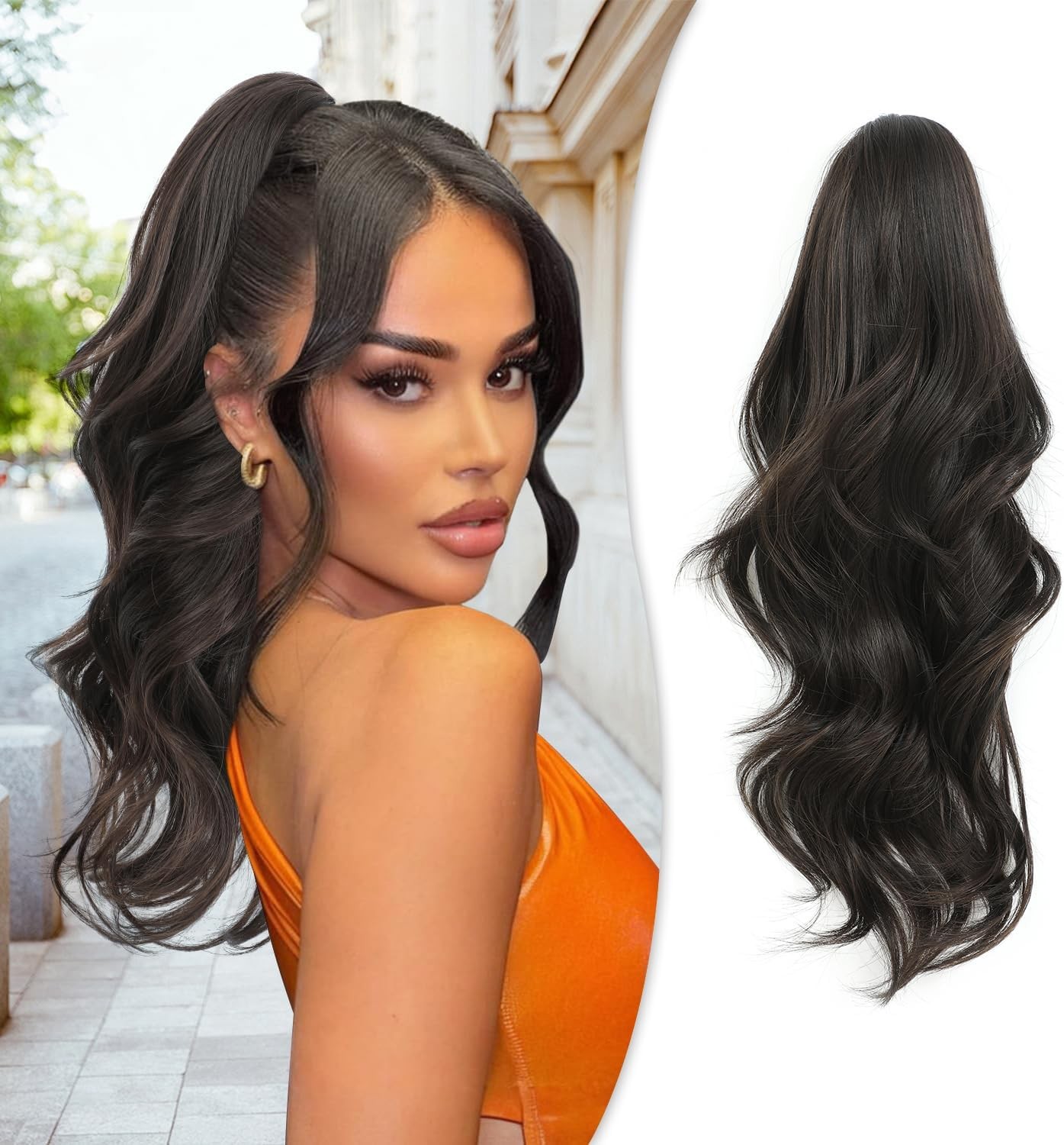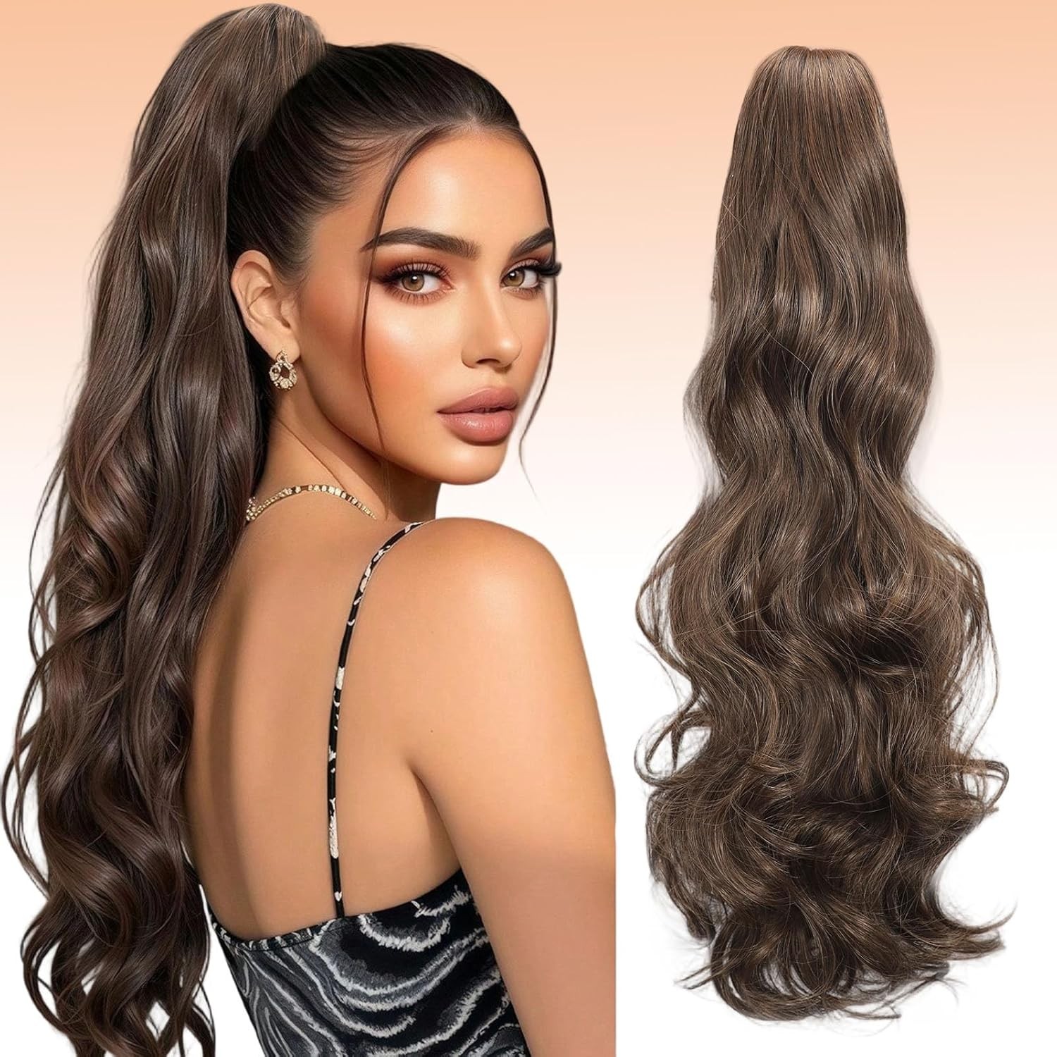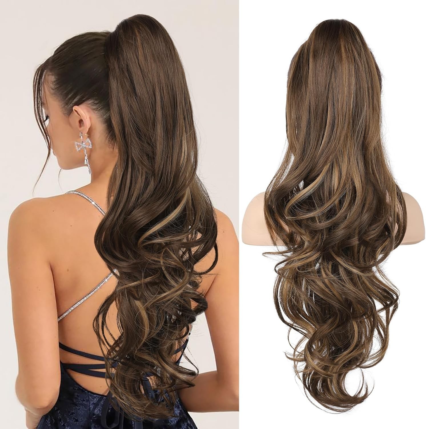 Flufymooz 26" Ponytail Extension, Long Wavy Curly Claw Clip in Ponytail Hair Ex