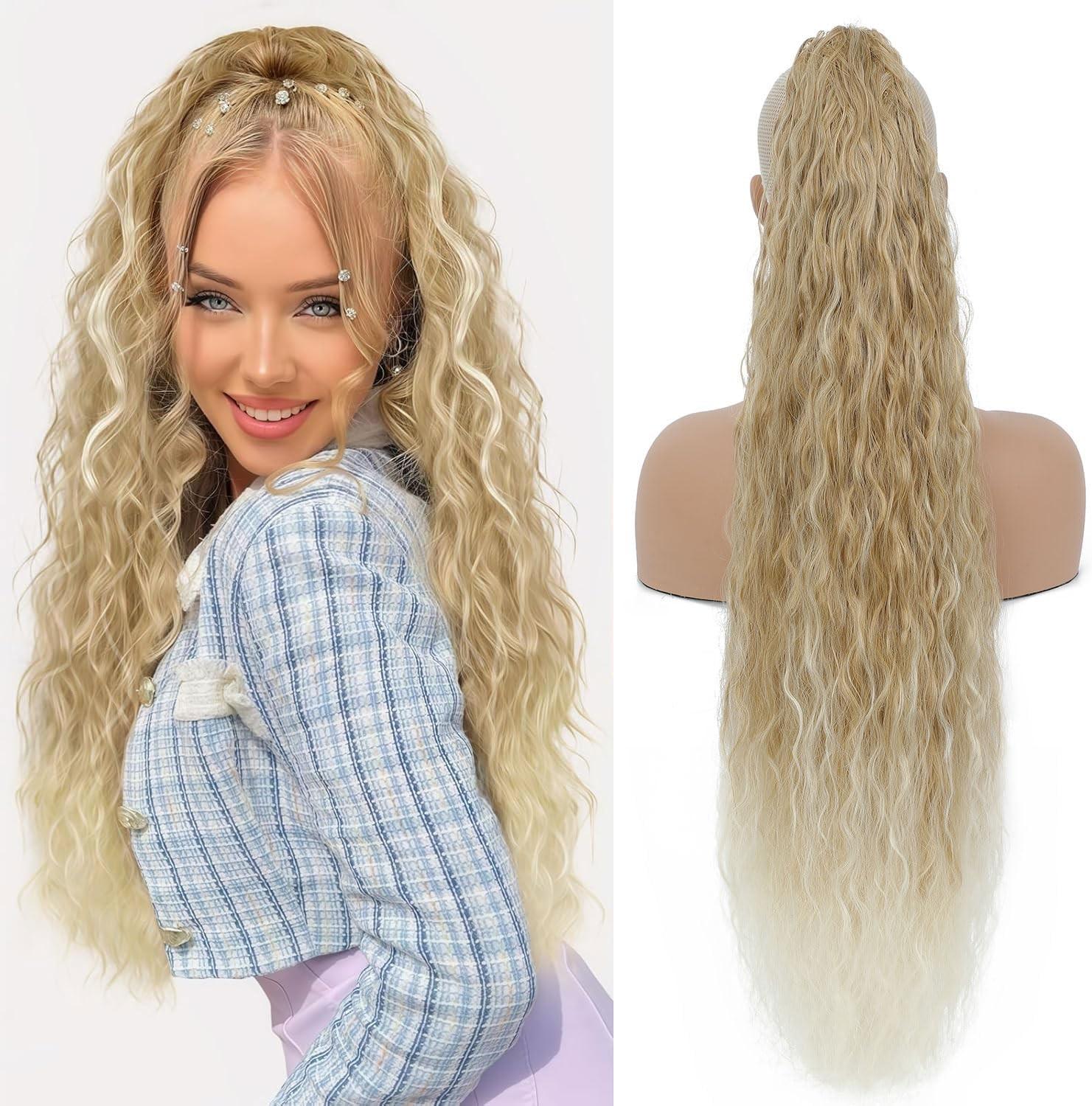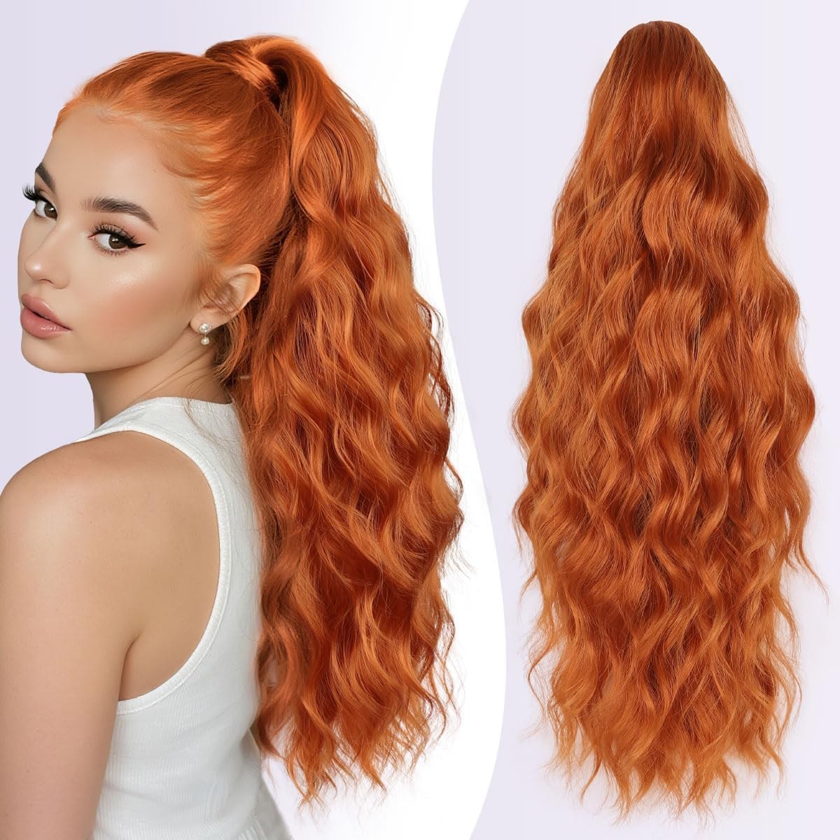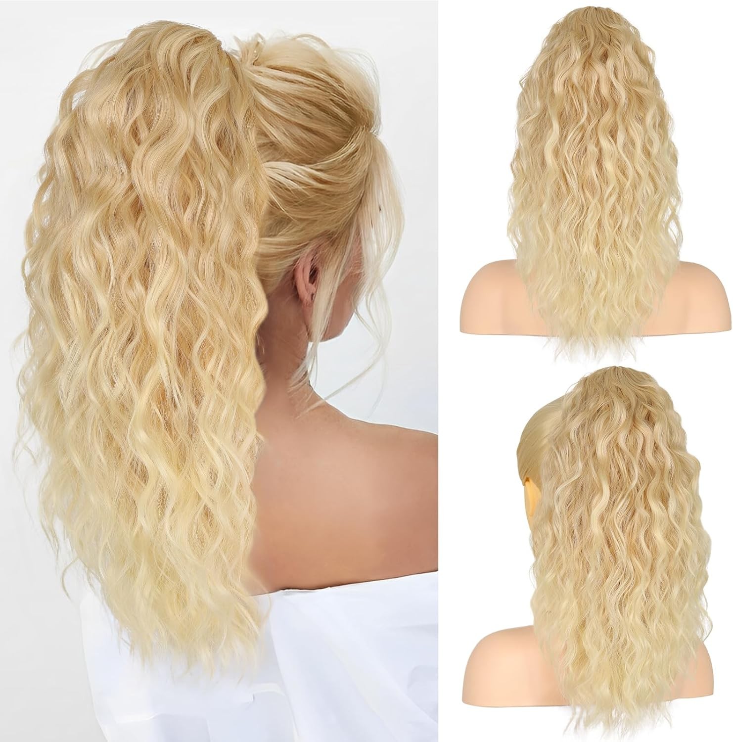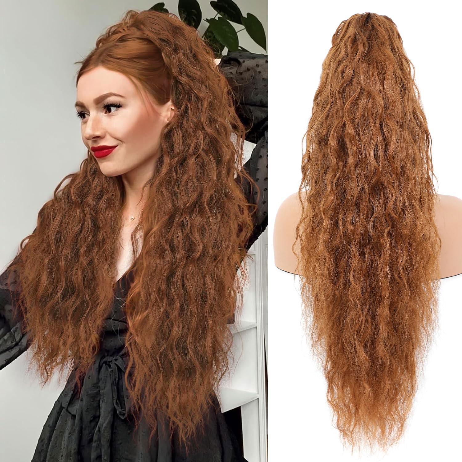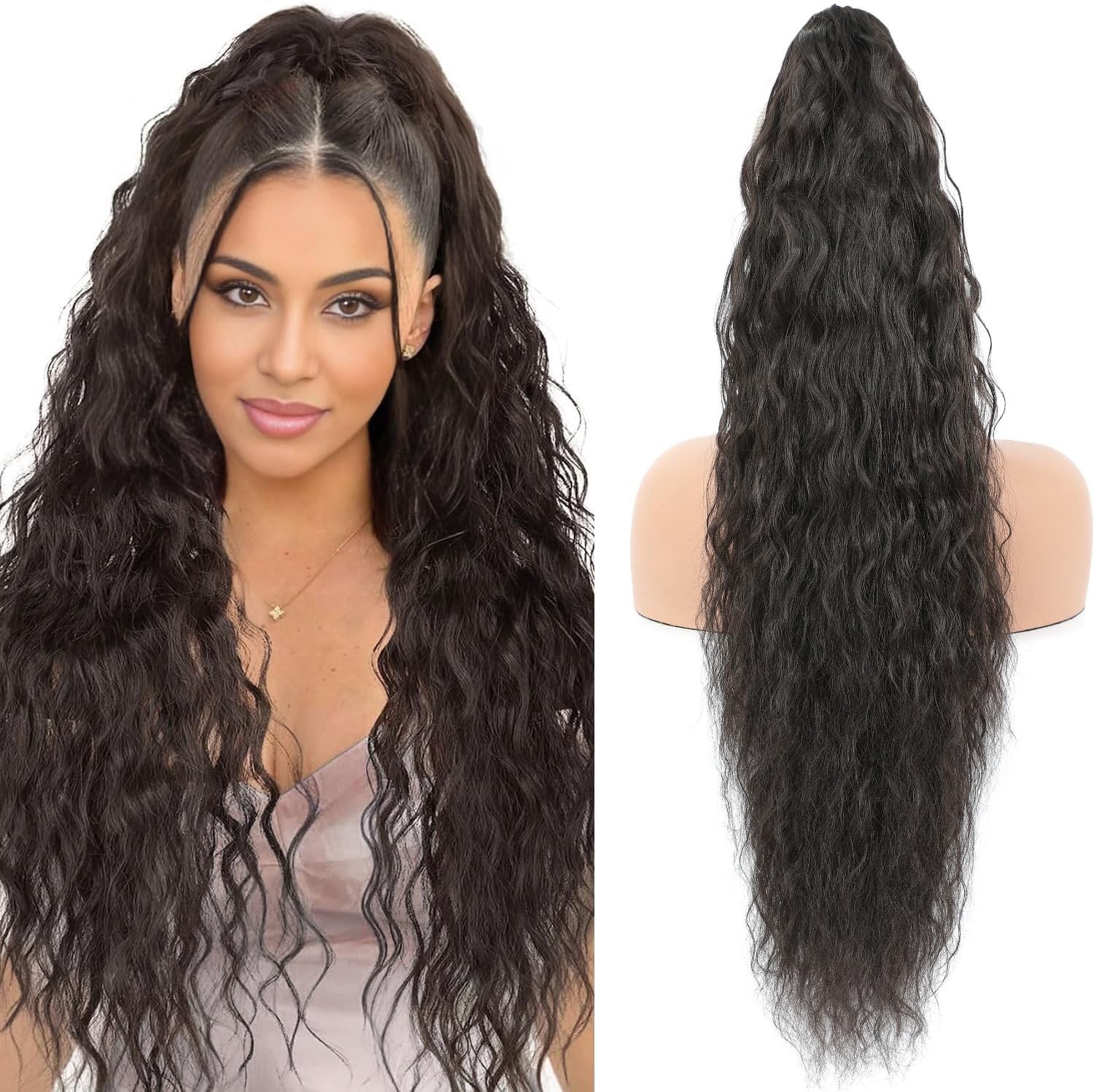 Flufymooz 26" Ponytail Extension, Long Wavy Curly Claw Clip in Ponytail Hair Ex