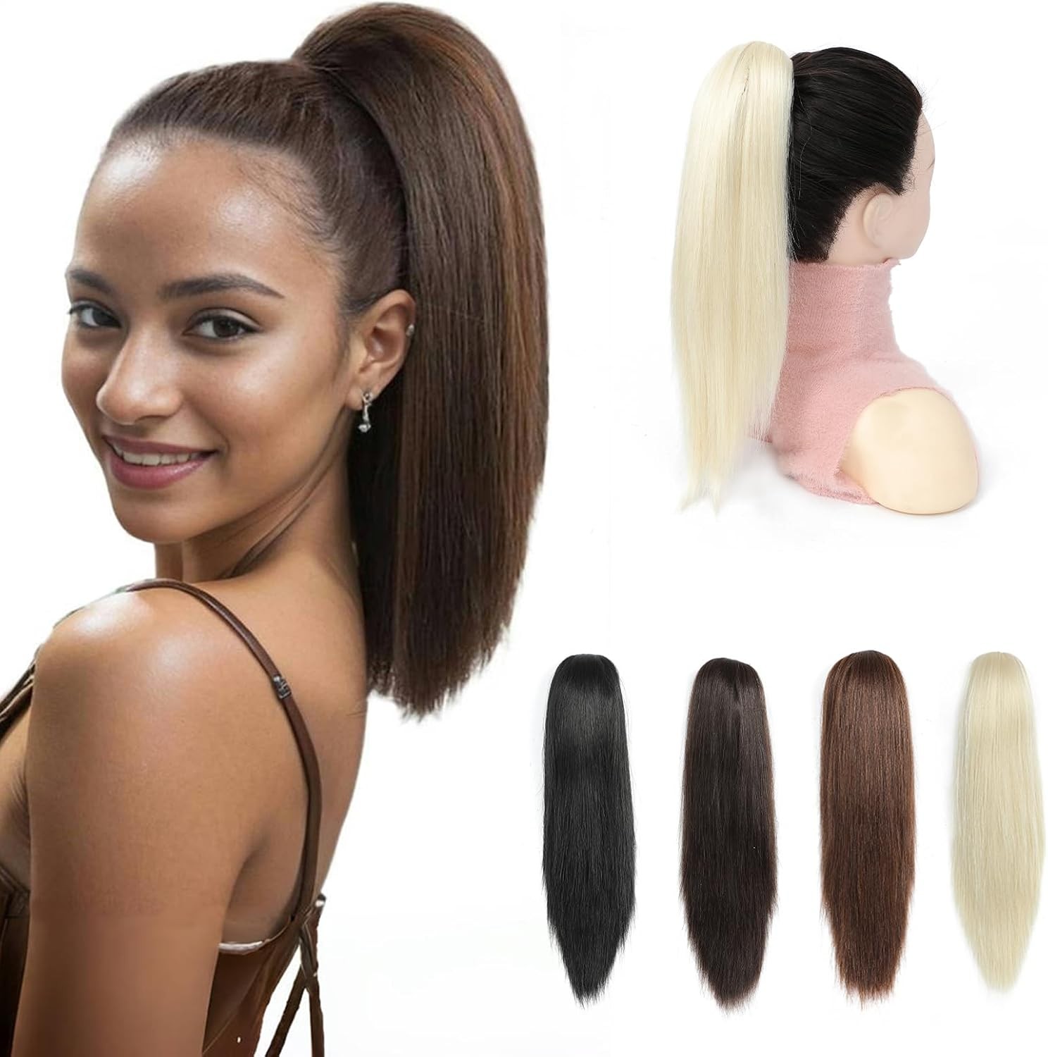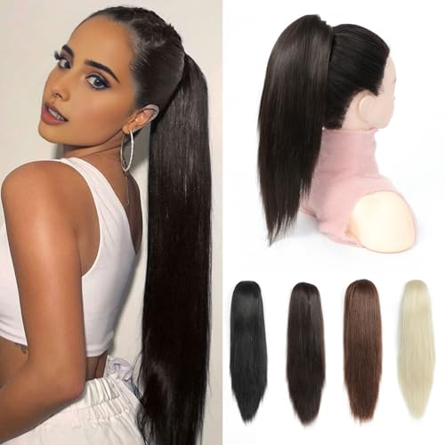 Yamel Ponytail Extension 16 Inch Medium Brown Straight Hair Ponytail Synthetic Hairpiece for Women Claw Clip Ponytail
