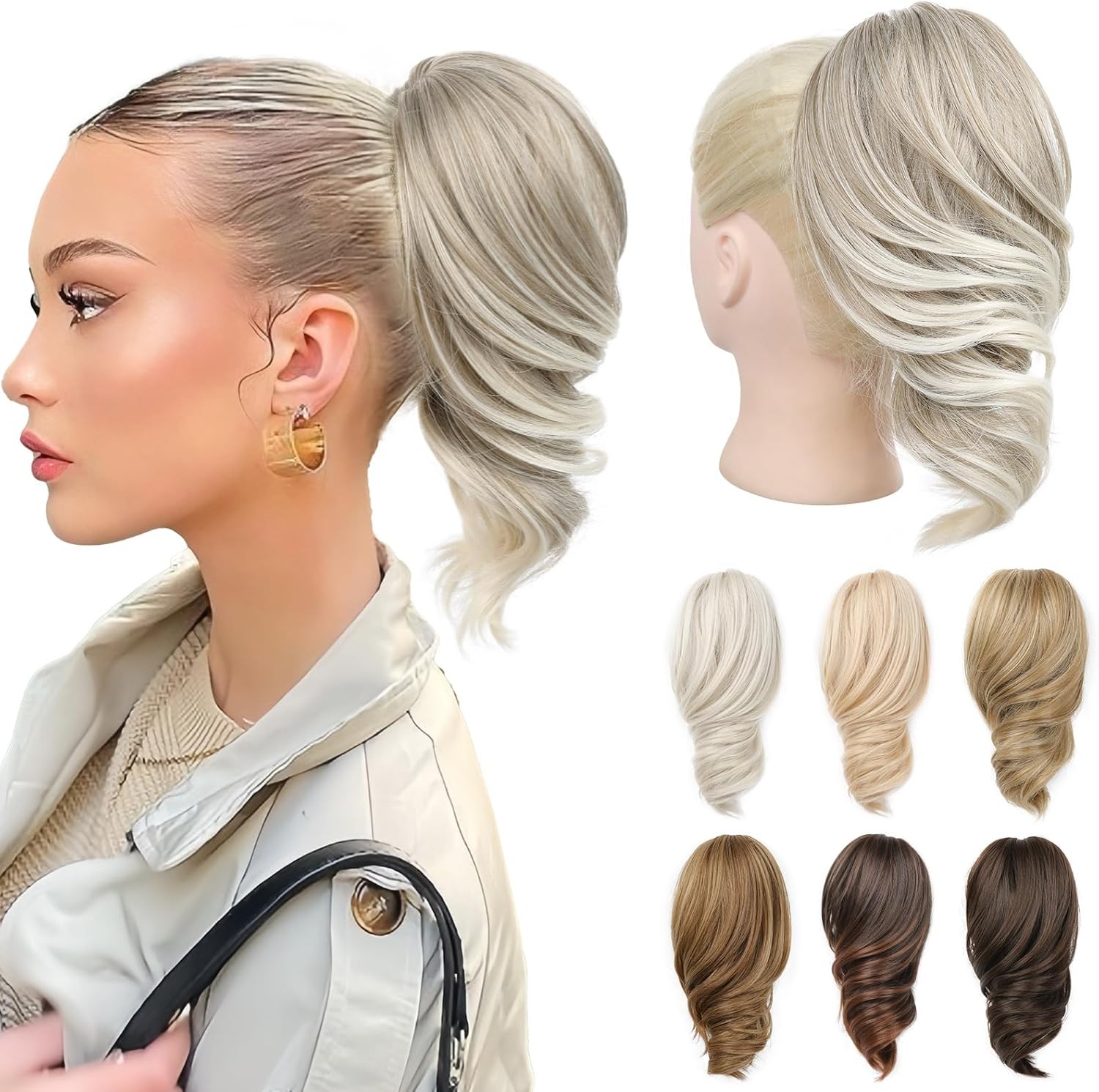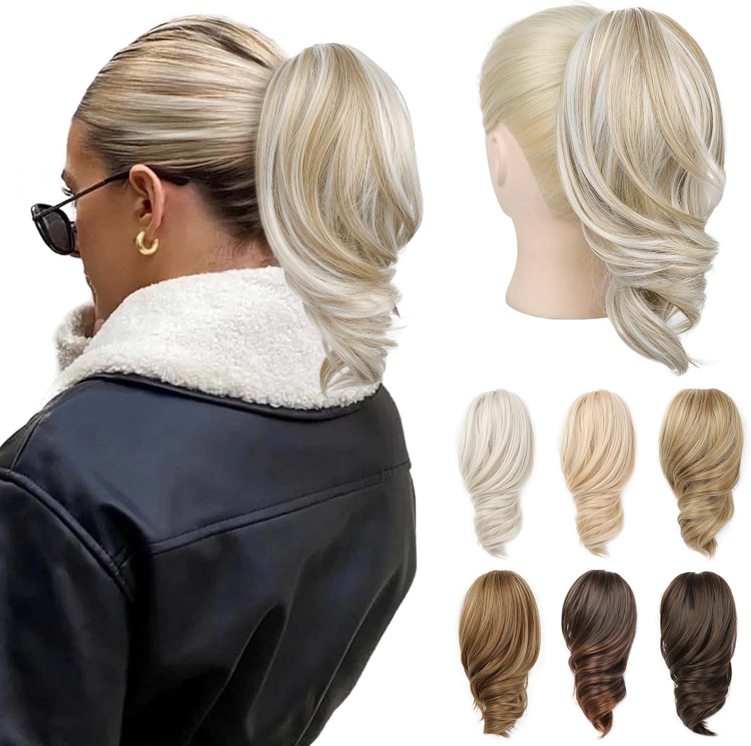 REECHO Ponytail Extension - 12" Short Claw Clip in Ponytail Hair Extension Wavy