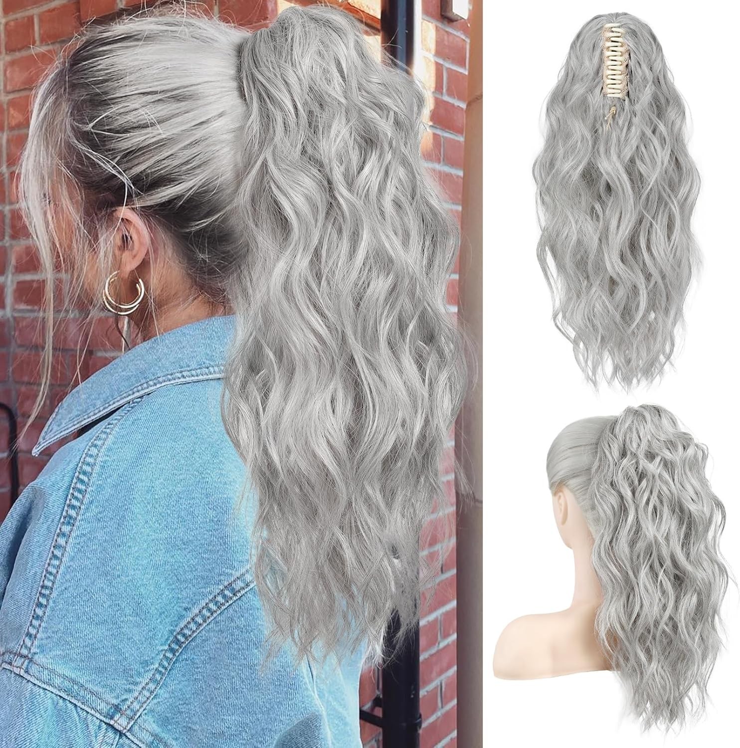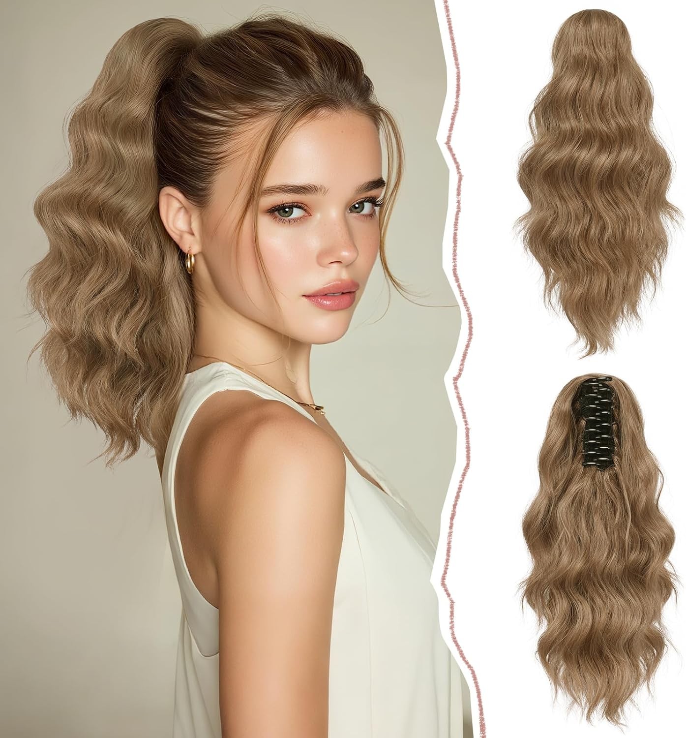 FINE PLUS Ponytail Extension Claw Synthetic Curly Wavy Claw Clip in Ponytail Ha