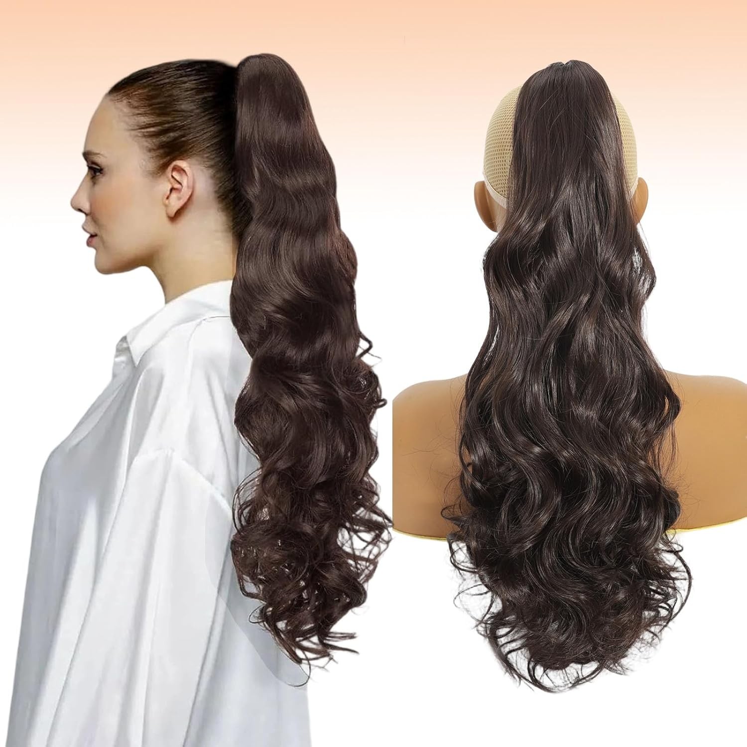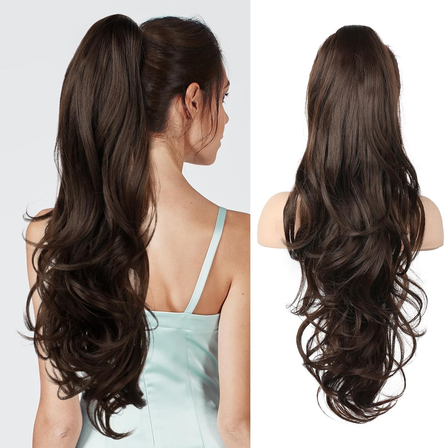 SYXLS Ponytail Extension For Women, 23inch Claw Clip In Long Curly Wavy Ponytail Hair Extension, Claw Clip Ponytail Hair Extensions, Suitable For Girls To Wear On Daily(Black Brown)