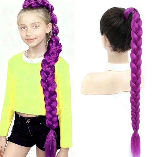 Long Purple Braid Cosplay Hair Extensions Synthetic Fiber Box Braiding Hair 24 INCH Easy Claw Clip ponytail extension for Cosplay Halloween Costume (purple, 24 Inch(Pre-Braids))