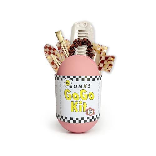 Bonks GoGo Kit - Hair Care Kit Espresso - Portable Hair Accessories Pouch for Women & Teens - Includes Mini Claw Clip, Seamless Hair Pins, Silky Hair Tie & Folding Comb - Compact Travel Essential