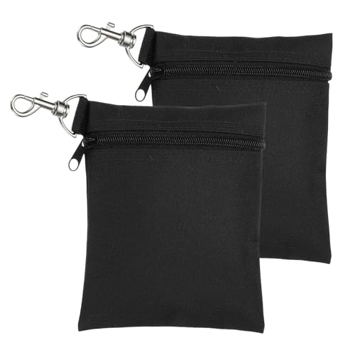 SCDZY Golf Tee Bag Pouch, 2 Pcs Golfs Accessories Bags, Zipper Golfs Ball Bag with Metal Lobster Claw Clip Golf Valuables Pouch Storage for Sports Golfing Accessories (Black)