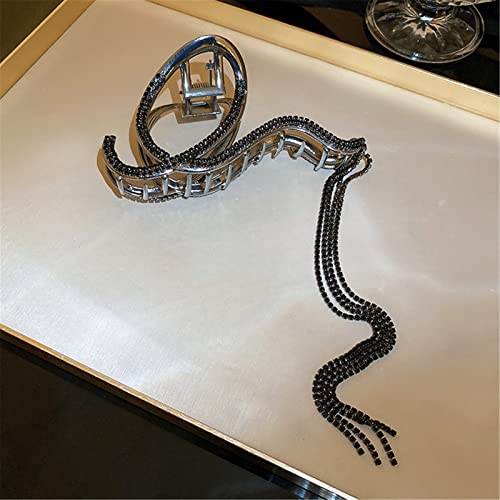 ZUOZUIYQ Claws Clips,Hair Accessories,Letter Q Tassel Hairpin Back Head Curling Large Metal Shark Claw Clip Temperament Hair Accessories Female Gold-color (Color : Rhodium Plated) Rhodium Plated