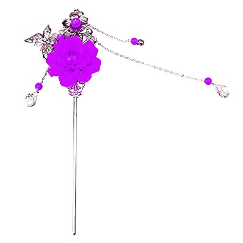 ZUOZUIYQ Female Hair Accessories,Hair Claw Clips,Resin Flower Hairpin Hair Stick Vintage for Hanfu Kimono Hair Accessory, Red, as described (Color : Purple)