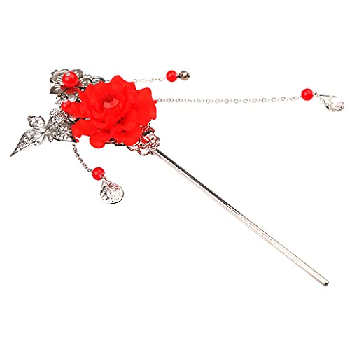 ZUOZUIYQ Female Hair Accessories,Hair Claw Clips,Resin Flower Hairpin Hair Stick Vintage for Hanfu Kimono Hair Accessory, Red, as described (Color : Red)