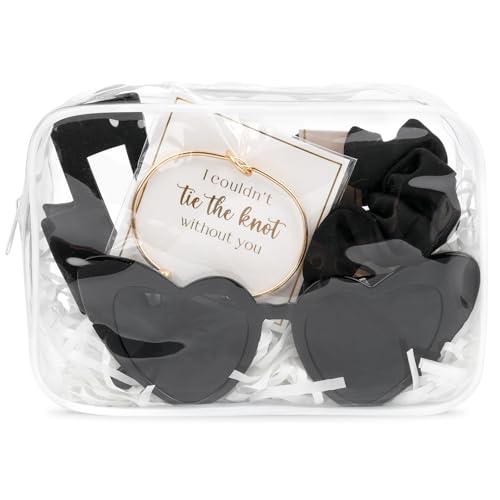 DEEKA 5 Pcs Bridesmaid Proposal Bag Set Gift Clear Makeup Toiletry Bag Bachelorette Party Favors Sunglasses Hair Claw Clips Scrunchies Knot Bracelets Bridal Wedding Party Gifts (Black)