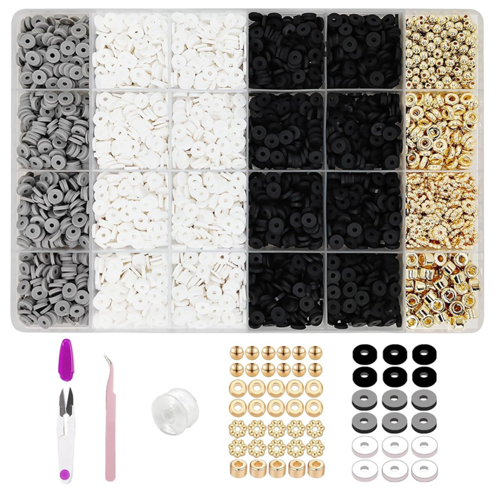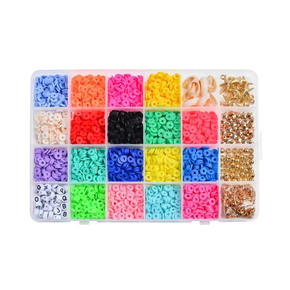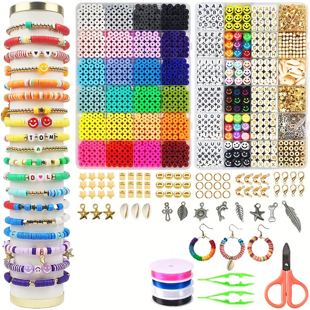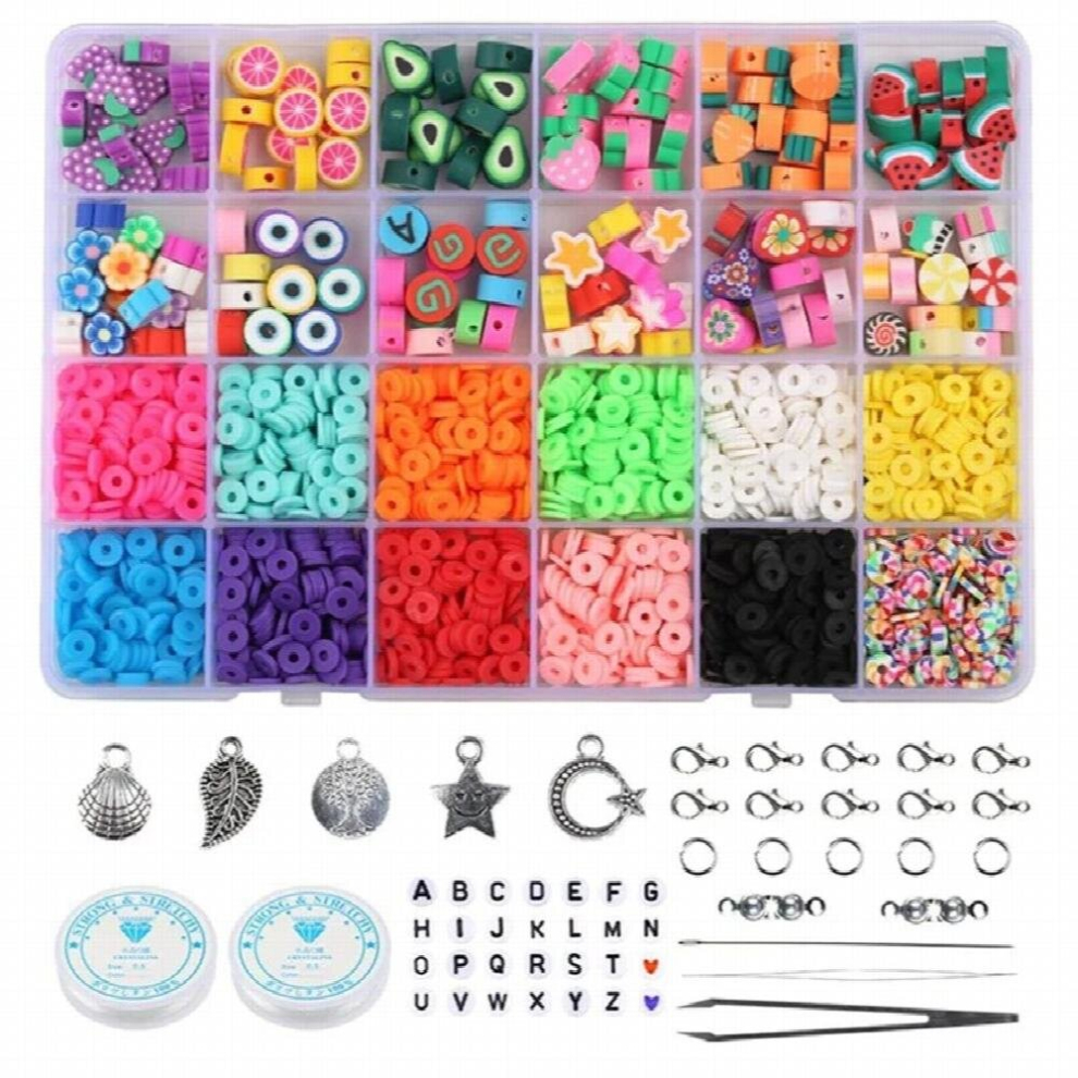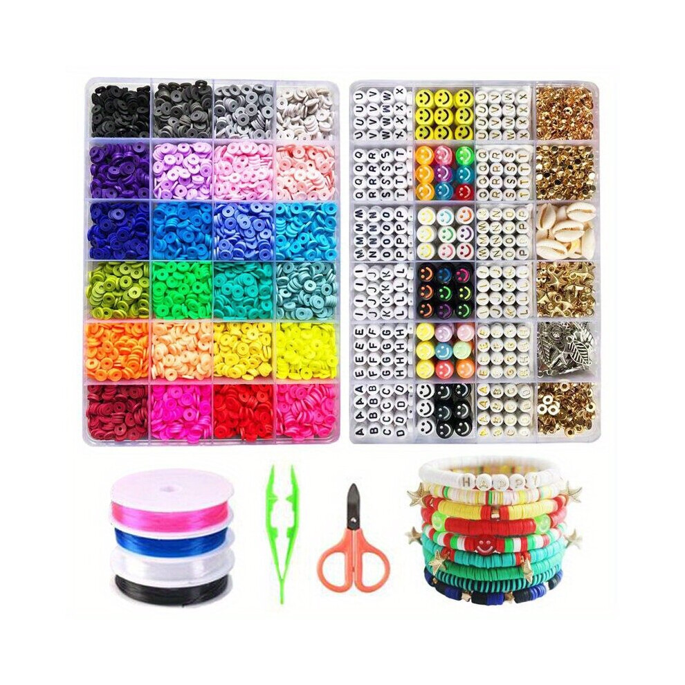 7200 Clay Bead Bracelet Making Kit 24 Interval Flat Beads For Jewelry Making Polymer Stone Beads With Charm