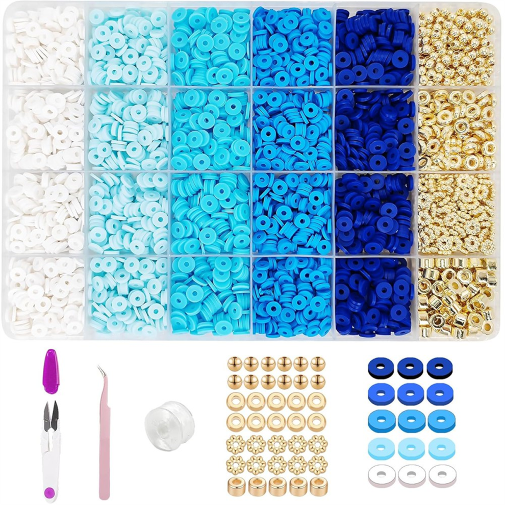Blue Clay Bead Bracelet Kit,Flat Clay Beads and Gold Spacer Beads for Jewelry Making, Friendship Bracelet Beads Kit