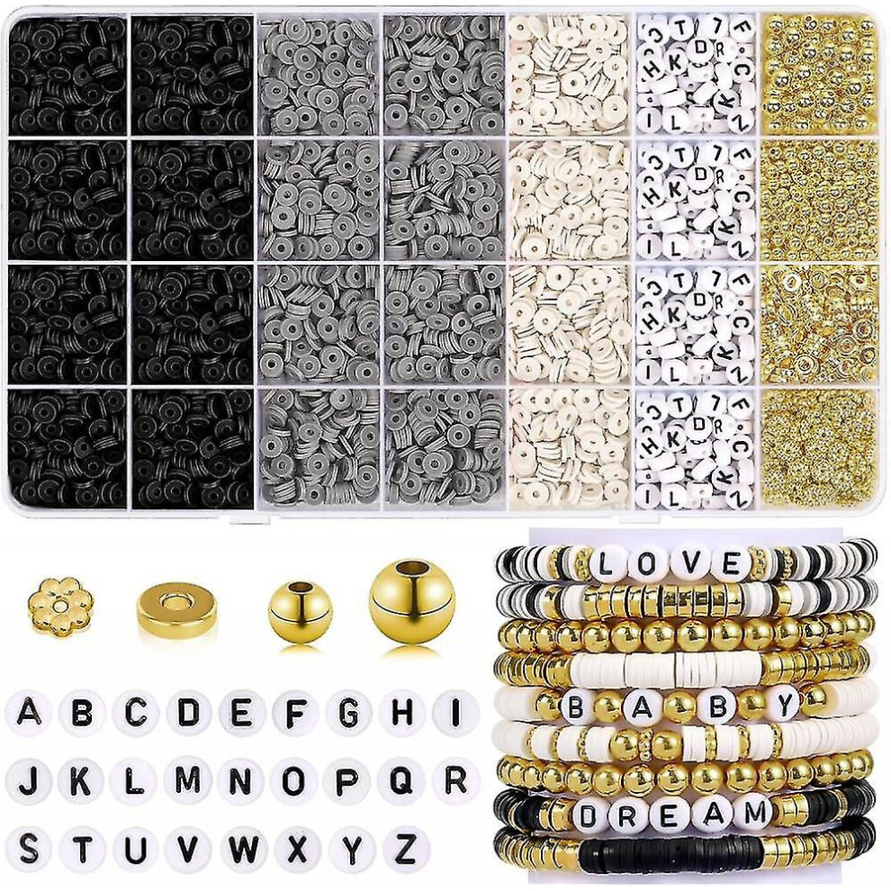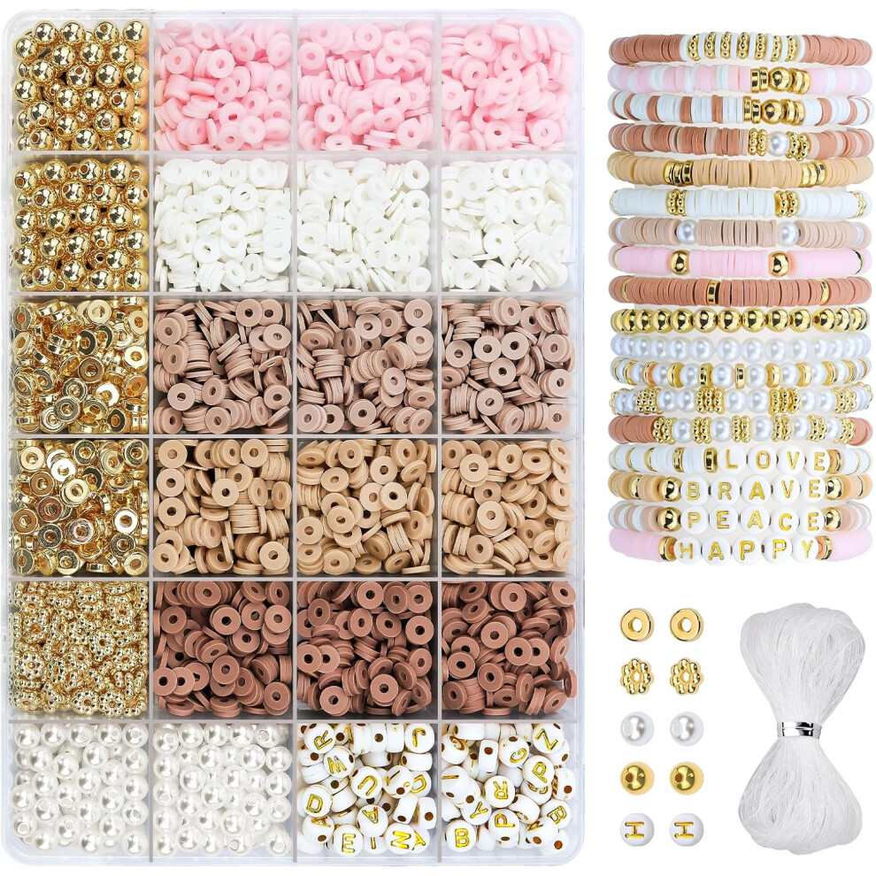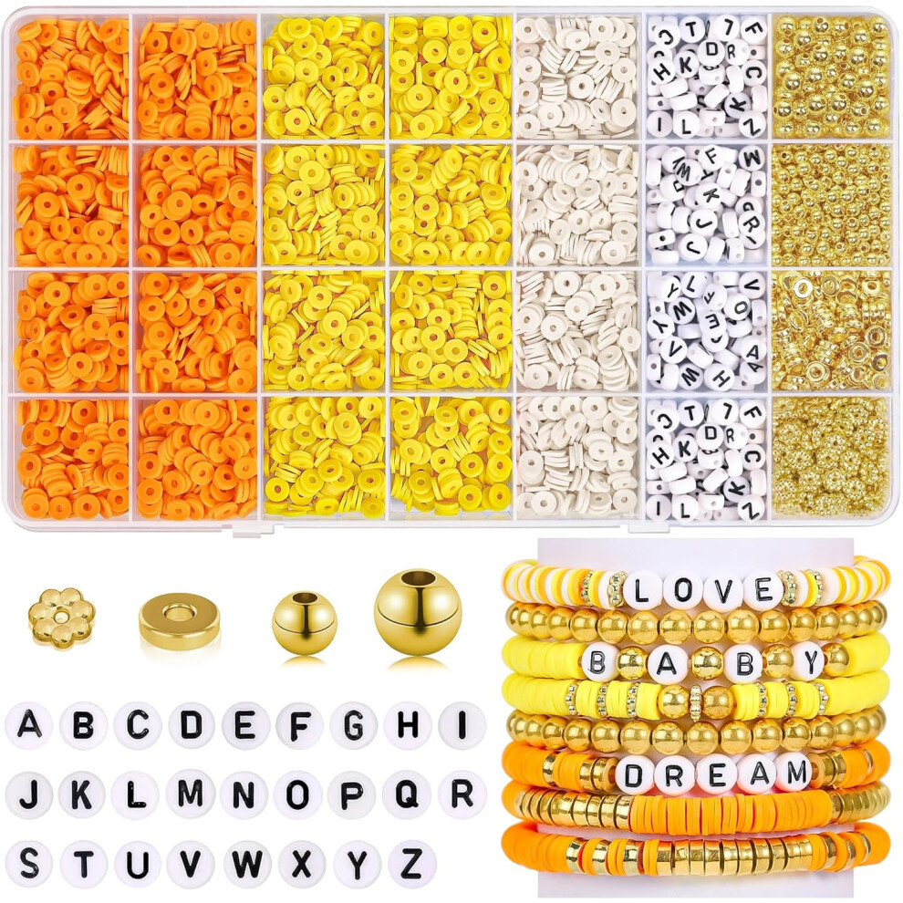 5000 Pcs Clay Bead Bracelet Making Kit for Girls Friendship Clay Beads for Bracelets Yellow Orange White Beads Letter Gold Beads for Jewelry Making Ki