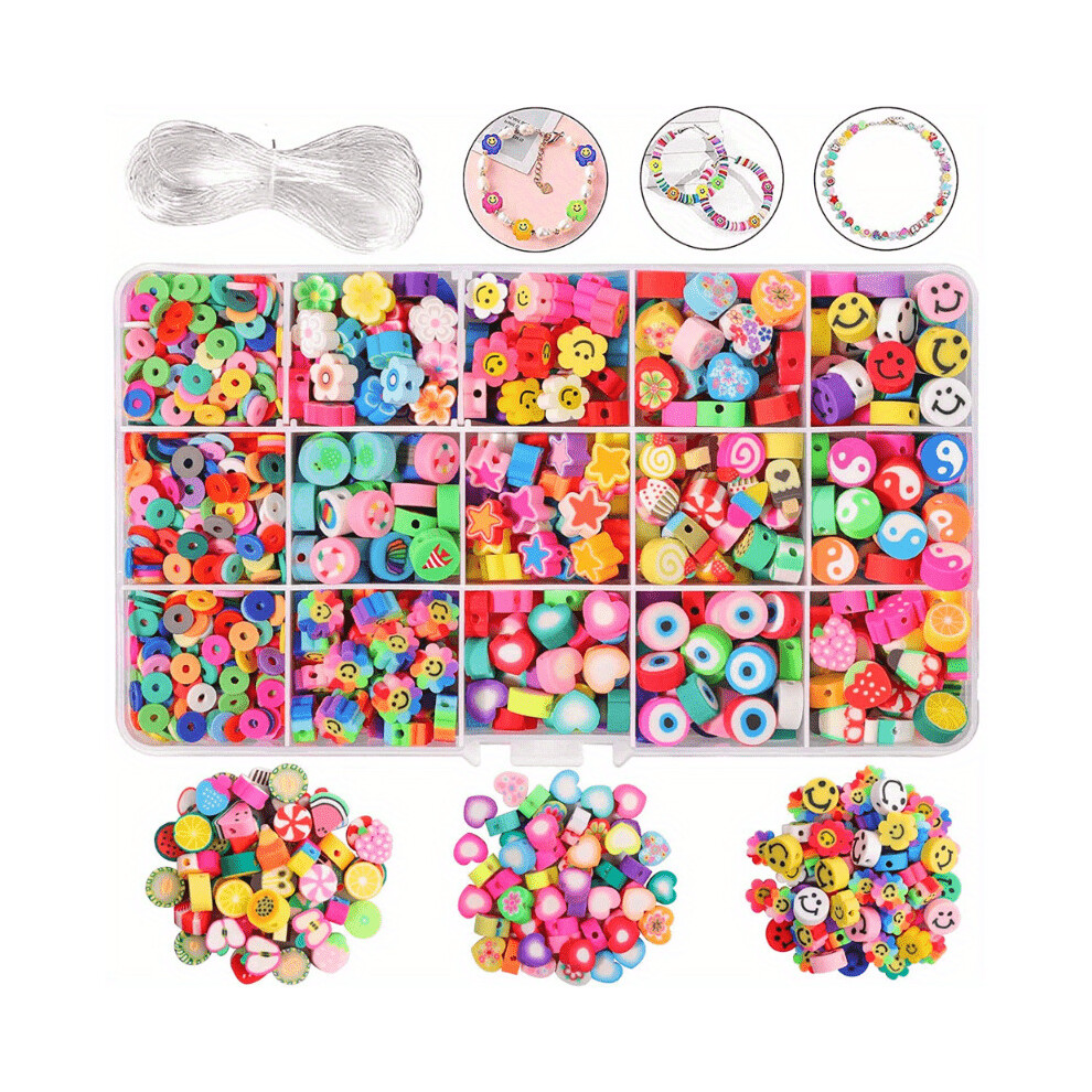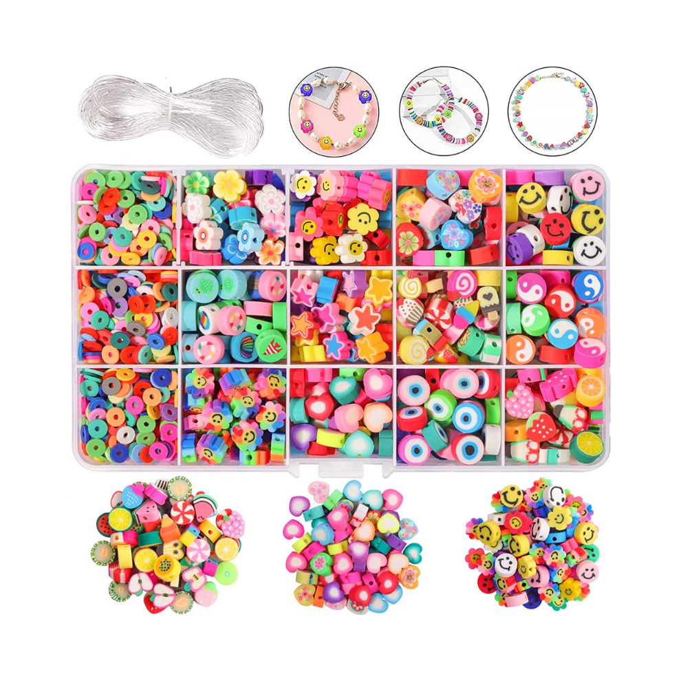 1140 Pcs Polymer Clay Bead Kit Flower Smiley Face Beads Mixed Fruit Spacer Beads Charms For Bracelet Jewelry Making