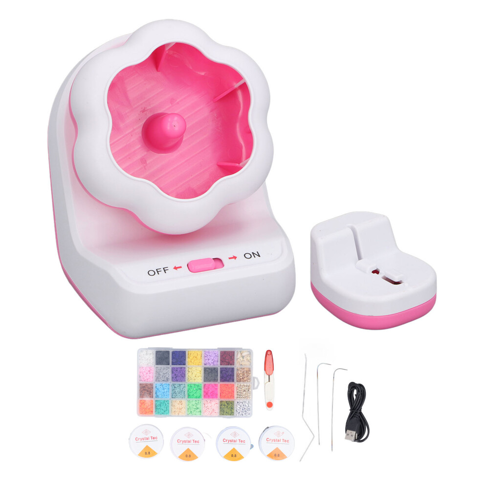 Generisch Electric Beads Spinner Bowl Multifunctional Clay Bracelet Kit Bead Loader, Hands-Free Thread Machine for Jewellery Artists, Fast Craft Tool Children and Adults