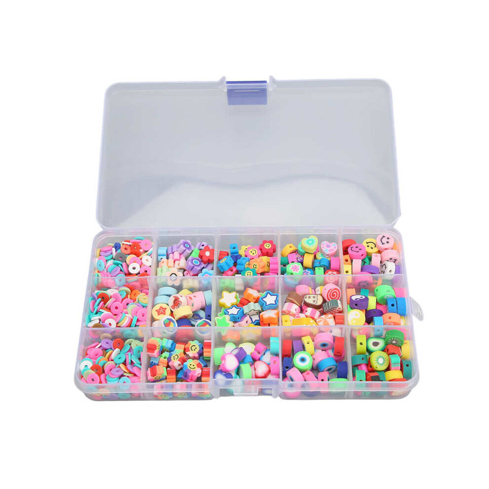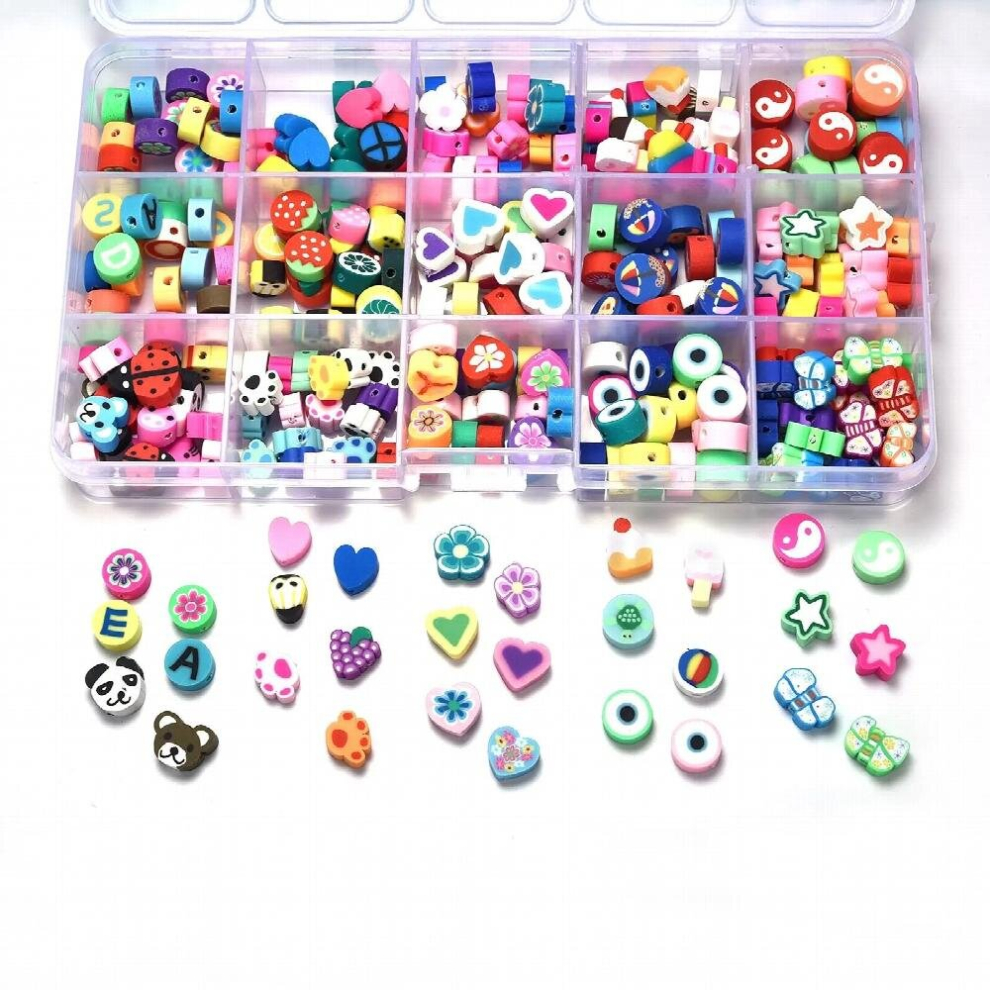 6mm Flat Round Polymer Clay Spacer Bead Set In Box Letter Smile Beads For Jewelry Making Fruit Seed Beads Set For Bracelets