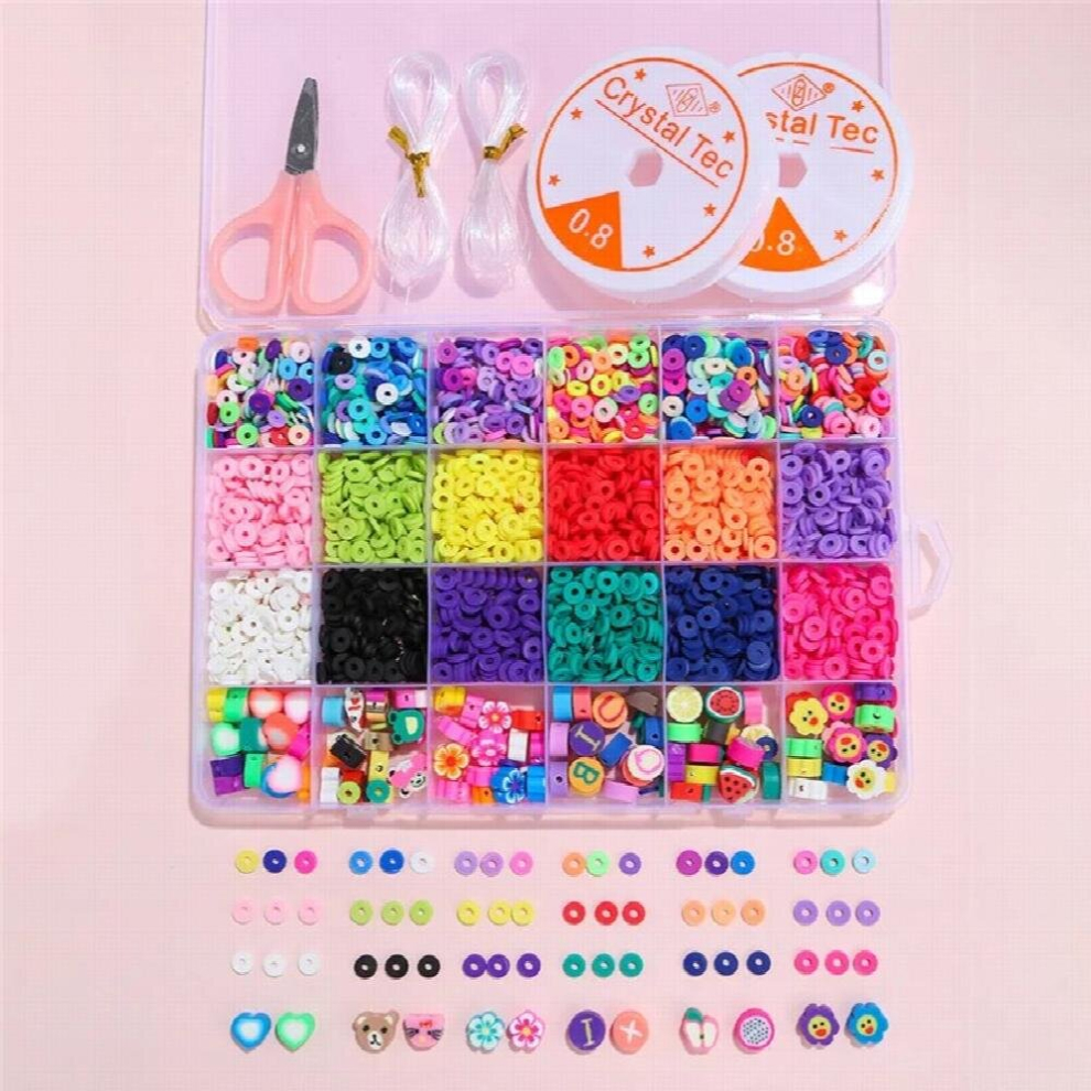 7200pcs Clay Beads Bracelet Making Kit 24 Colors Flat Round Polymer Clay Beads Jewelry Making Set With Face Letter Beads