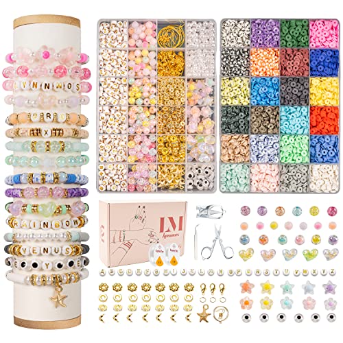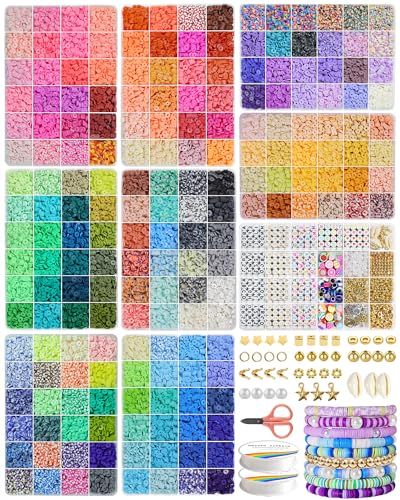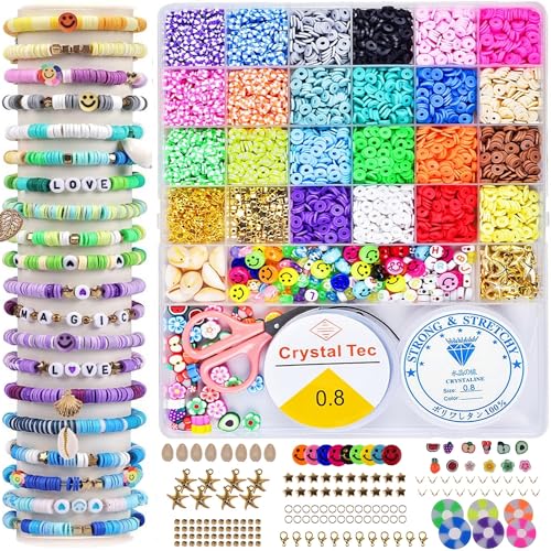 Lynnmos Clay Beads Bracelet Making Kit - 7200 Pcs - Jewellery Making Kit with Flat Round Spacer Heishi Beads - Friendship Bracelet kit for Girls Teens