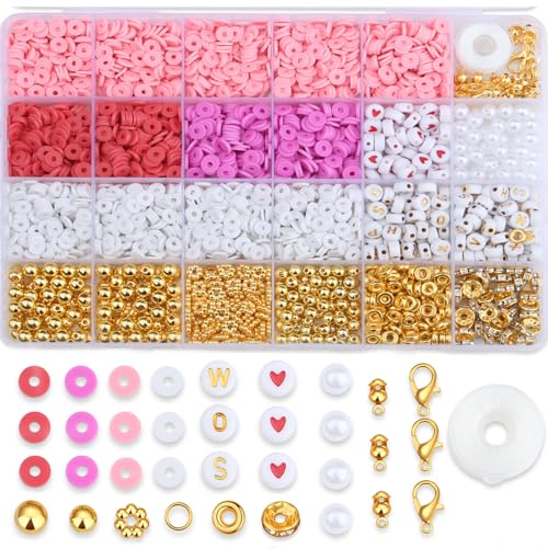 AWARDSEN Pink Clay Beads Bracelet Making Kit Polymer Beads for Bracelet Making Friendship Bracelet Making Kit 3265 Pcs Jewellery Making Supplies Art and Crafts DIY Necklace Earring Jewellery