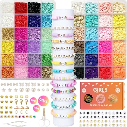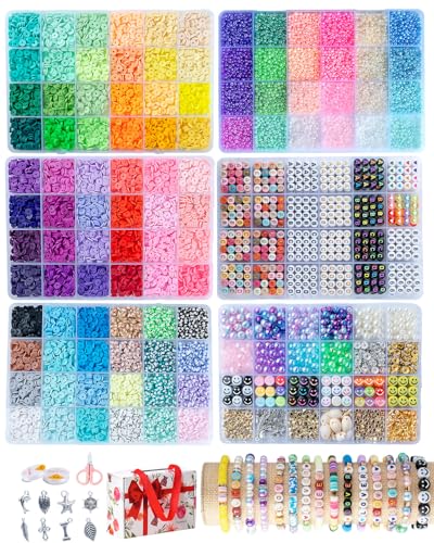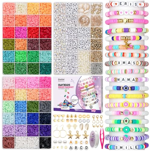Gionlion 6000 Clay Beads Bracelet Making Kit, Friendship Bracelet Kits Preppy Beads for Jewellery Making, Flat Heishi Bead for Bracelet Arts and Crafts Gifts for Teen Girls
