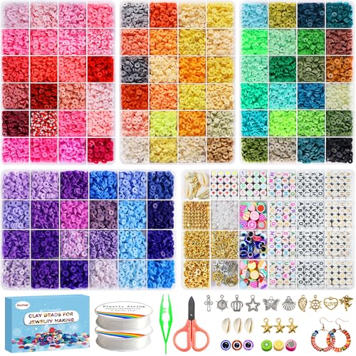 Mactoou 12000+ PCS Bracelet Making Kit, 24 Colors Polymer Clay Beads for Jewelry Making, 6mm Heishi Beads Set, 3mm Glass Seed Beads with Letters Beads for Bracelet Necklace, Present for Girls