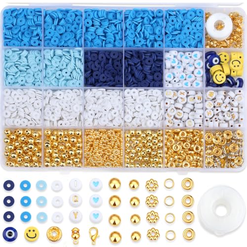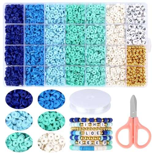 AWARDSEN Blue Clay Beads Bracelet Making Kit Polymer Beads for Bracelet Making Friendship Bracelet Making Kit 3445 Pcs Jewellery Making Supplies Art and Crafts DIY Necklace Earring Jewellery