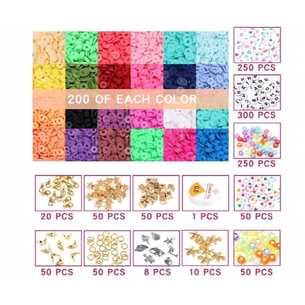 7200 Pcs Clay Beads Bracelet Making Kit Jewelry Making Kits. Gifts Set