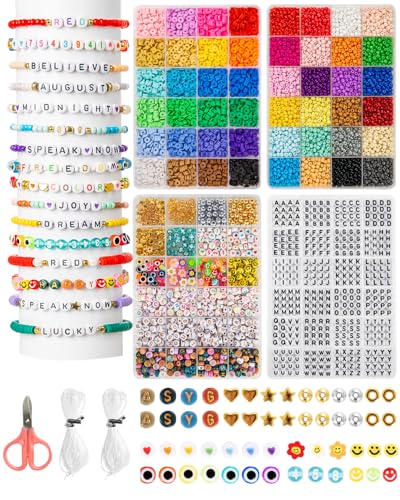 SJZWSD Friendship Bracelet Kit - 13000pcs Polymer Clay & Glass Seed Beads, 48 Colors, 6mm Heishi & 416 Letters Beads for Bracelet Making & Friendship Bead Creations