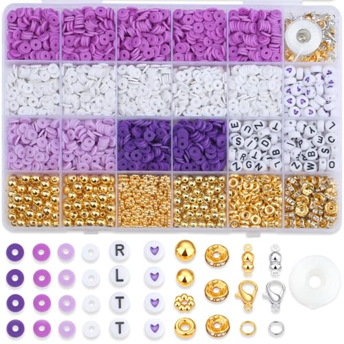 AWARDSEN Purple Clay Beads Bracelet Making Kit Polymer Beads for Bracelet Making Friendship Bracelet Making Kit 3290 Pcs Jewellery Making Supplies Art and Crafts DIY Necklace Earring Jewellery