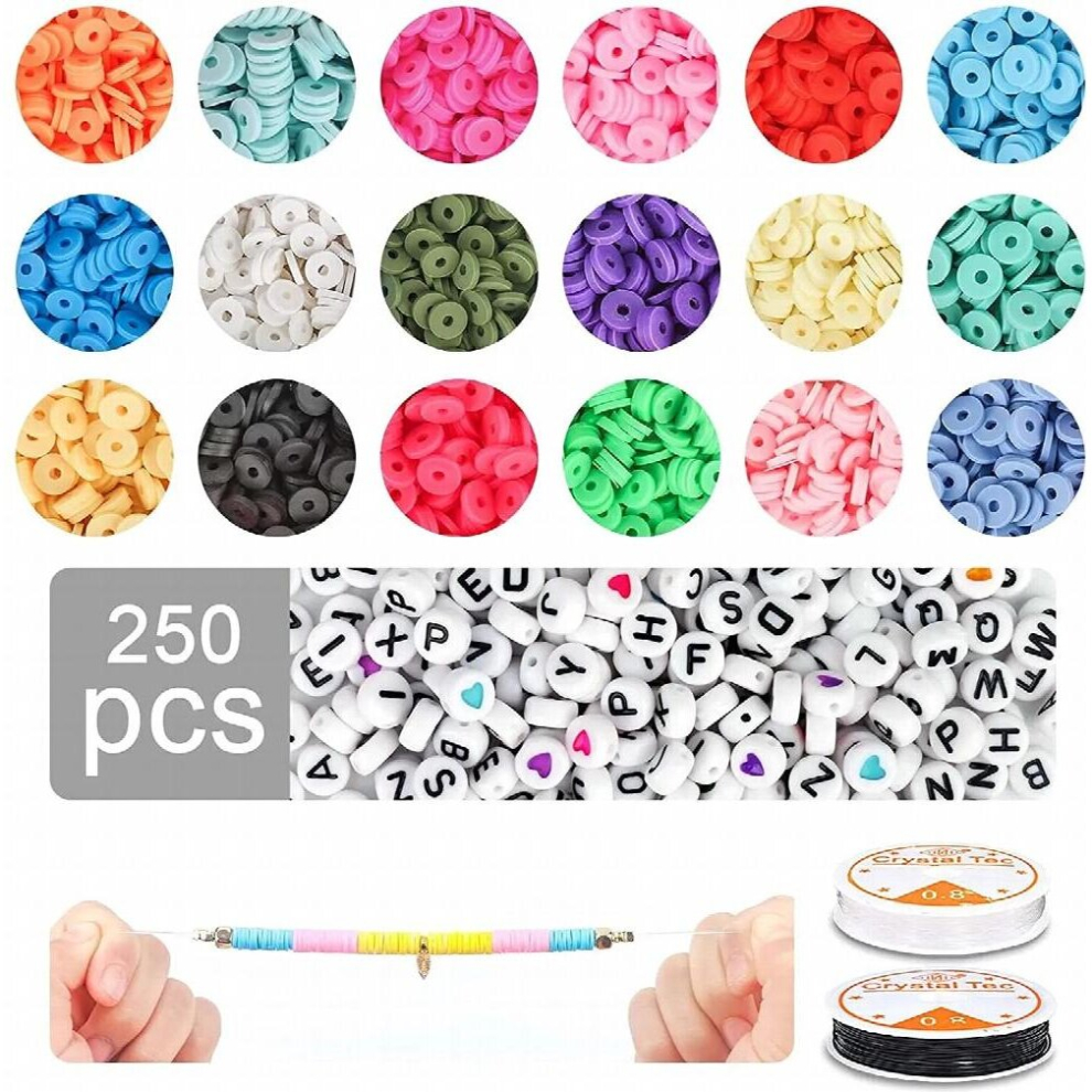 Polymer Clay Loose Letter Beads Kit Charms Elastic String Lobster Clasp Jump Rings Box for Jewelry Making DIY Bracelet Set