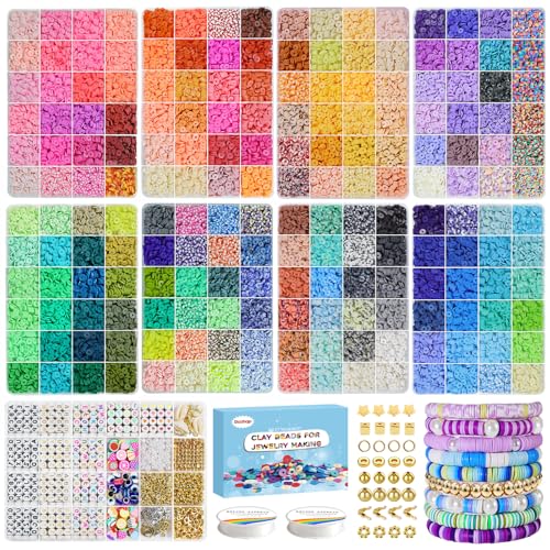 Dazhqp 31000 Clay Beads Bracelet Making Kit, 9 Boxes 192 Colours Friendship Bracelet Kit Flat Polymer Heishi Beads for Jewellery Making, Crafts Gift for Girls Ages 6-12