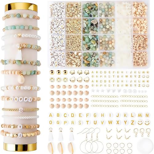 Leuyuee Natural Stone Friendship Bracelet Making Kit Clay Alphabet Beads for DIY Arts Earring, Jewelry and Crafts Making DIY Craft Gifts for Teen Girls