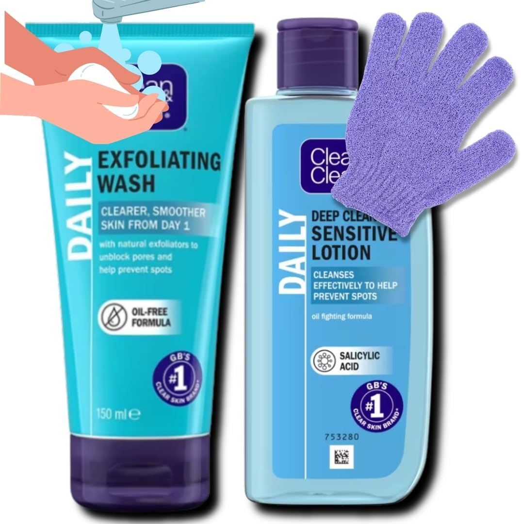 Clean & Clear Complete Acne Treatment Skincare Bundle – Exfoliating Daily Was
