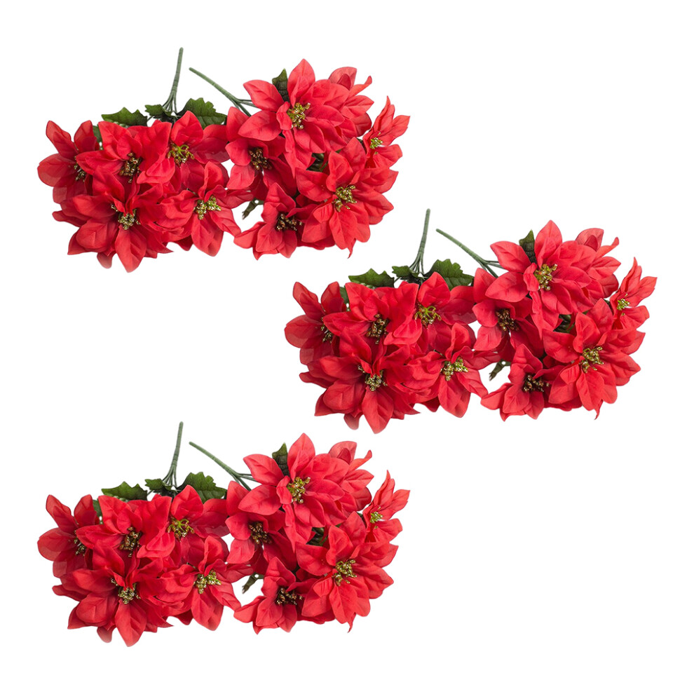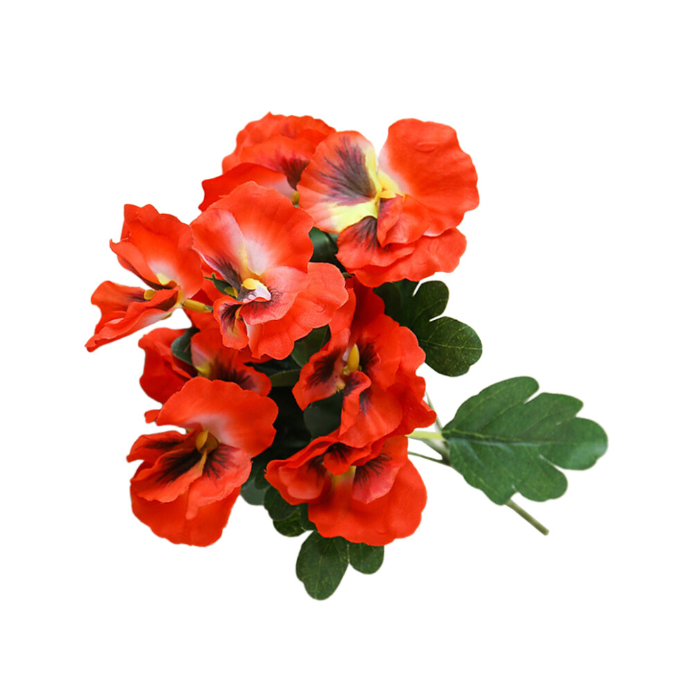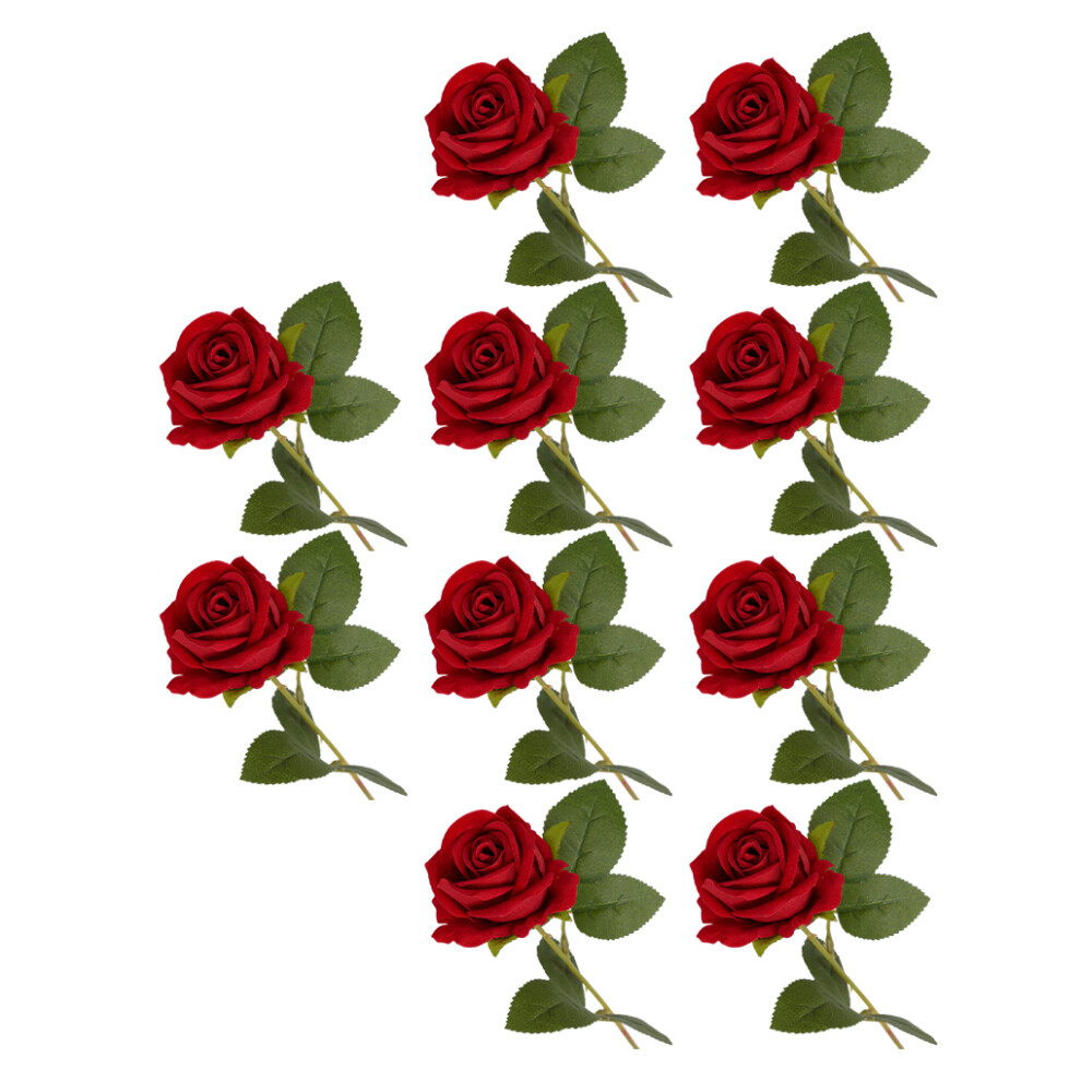 (Brilliant red) 10x Faux Flowers And Plants Easy To Clean Artificial Flower Bouquet