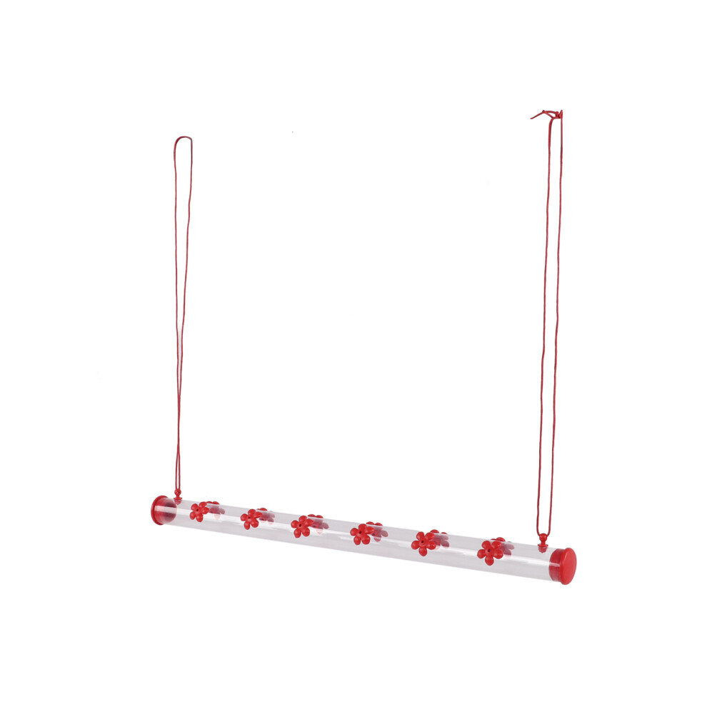Hanging Long Tube Bird Feeder Easy to Clean Feeder with Flower for Deck Terrace Garden Courtyard43x3x3cm