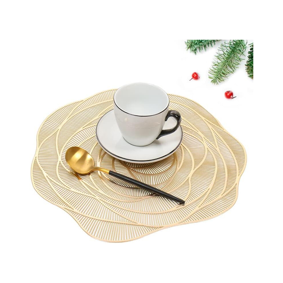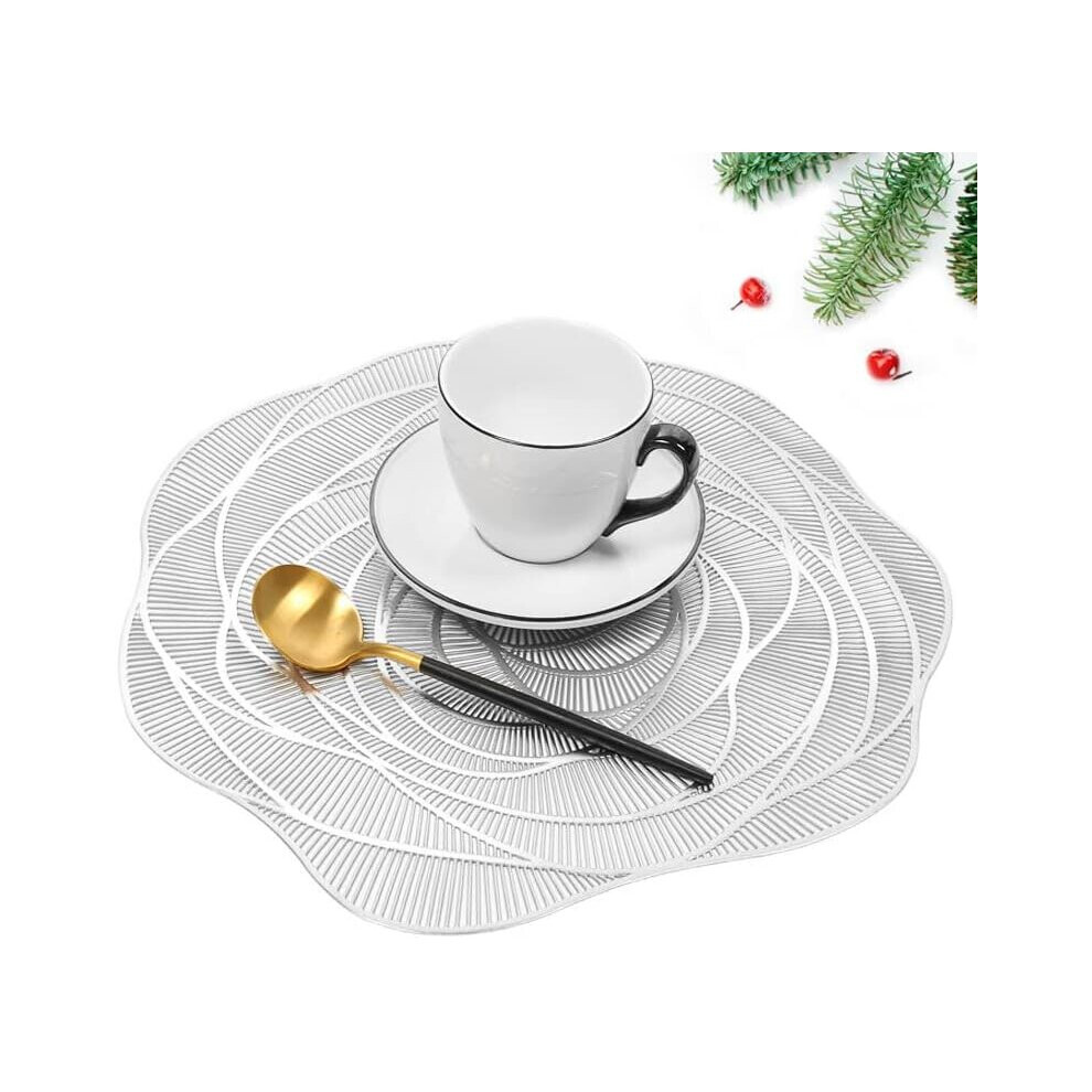 (As show, One size) Set Of 6 Washable Pvc Placemats Non-slip Wear-resistant Heat-resistant, Easy To Clean And Store, Flower (silver)