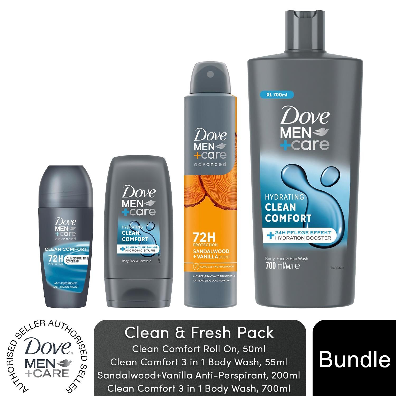 Dove Men+Care Clean Comfort Body & Face Wash, 3-in-1 Wash, Roll-On & Deo Spray