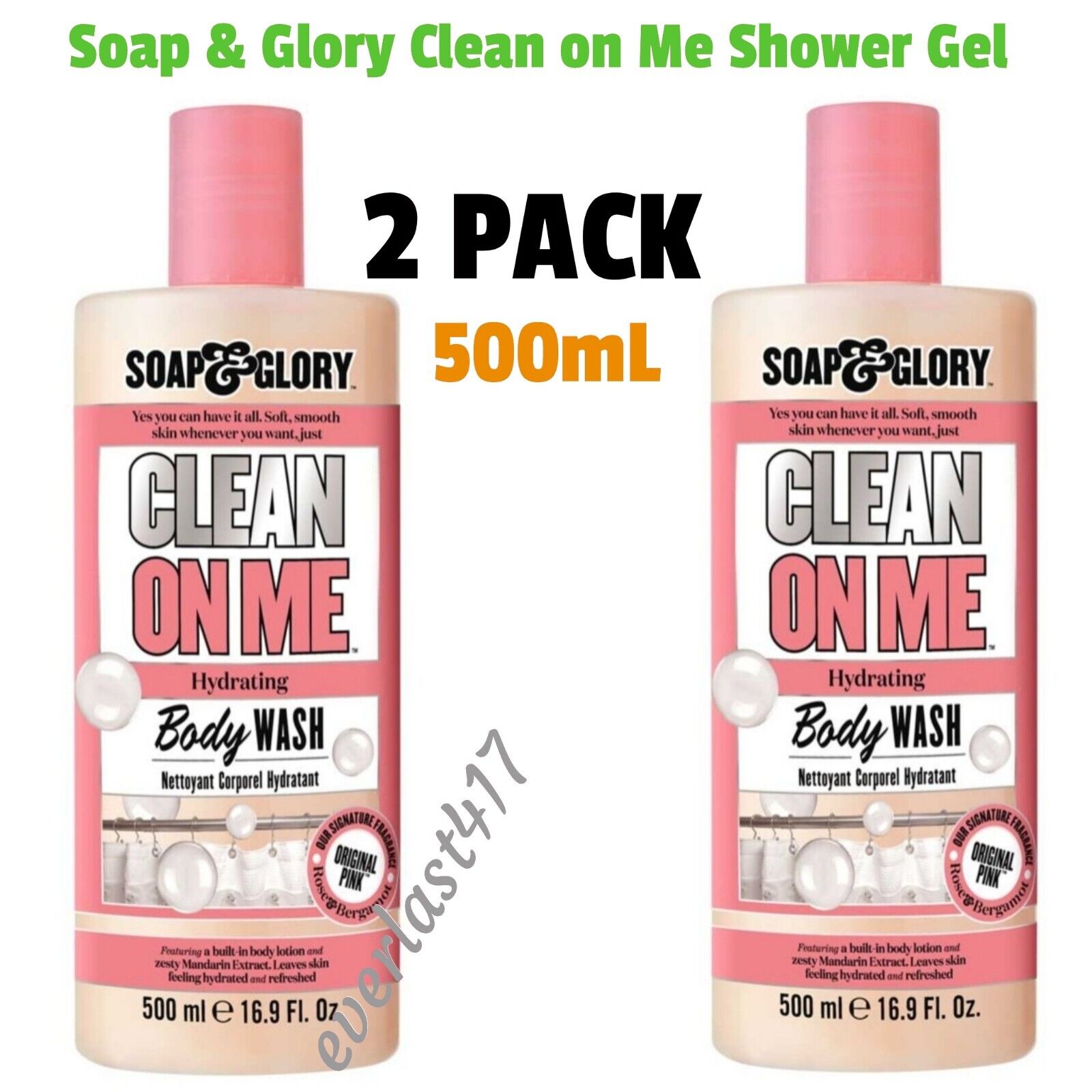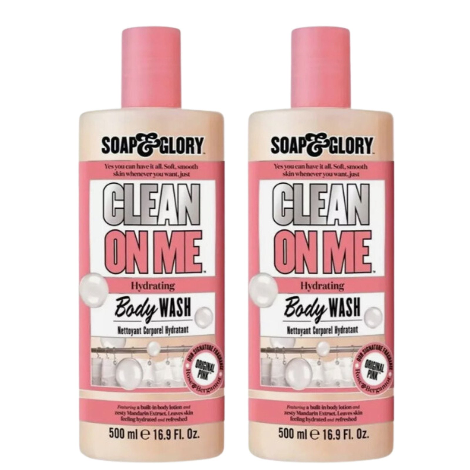 Soap & Glory Clean on Me Hydrating Body Wash Original Pink Fragrance,500mL,2PACK