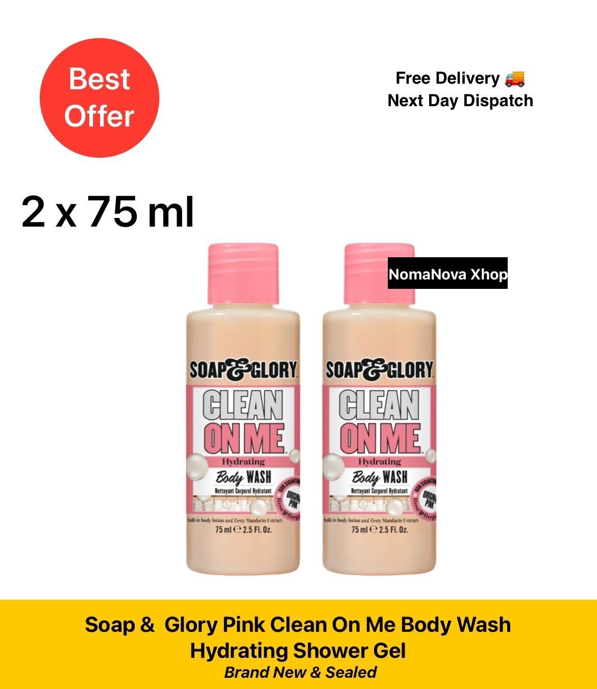 2 x Soap & and Glory Pink Clean On Me Body Wash Hydrating Shower Gel Mini 75ml