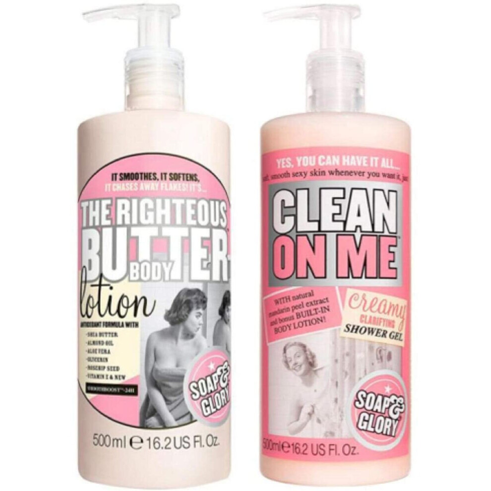 Soap & Glory The Righteous Body Butter Lotion & Clean On Me Shower Gel Bundle â 500ml Each, Hand Pumps