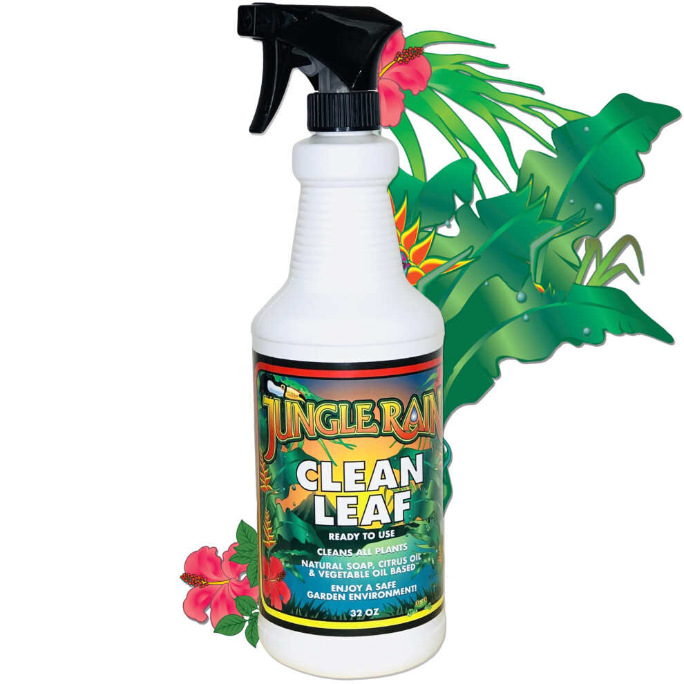 Jungle Rain Clean Leaf - Natural Non-Toxic Plant & Tree Cleaner with Orange Oil & Castile Soap Ready-to-Use 32oz Spray for Indoor & Outdoor Car