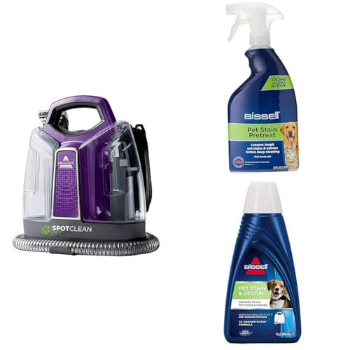 BISSELL SpotClean Pet | Portable Carpet Cleaner | Clean Carpets, Stairs, Upholstery, Car Seats | 36982 & Pet Stain & Odour Formula | 1085N | 1L & Pre-Treat Pet | 1137E