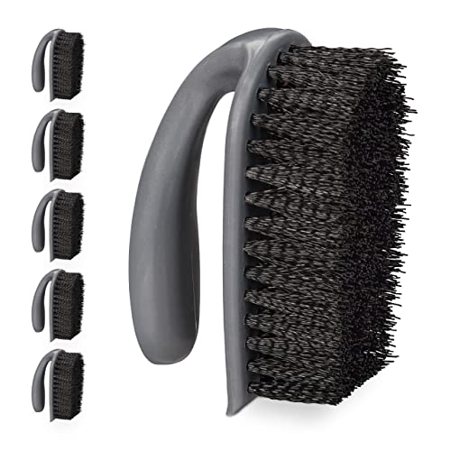 Relaxdays Scrubbing Brush, Set of 6, Hard Bristles, with Handle, Bathroom, Kitchen, Carpets, Shoe Cleaner, Plastic, Grey