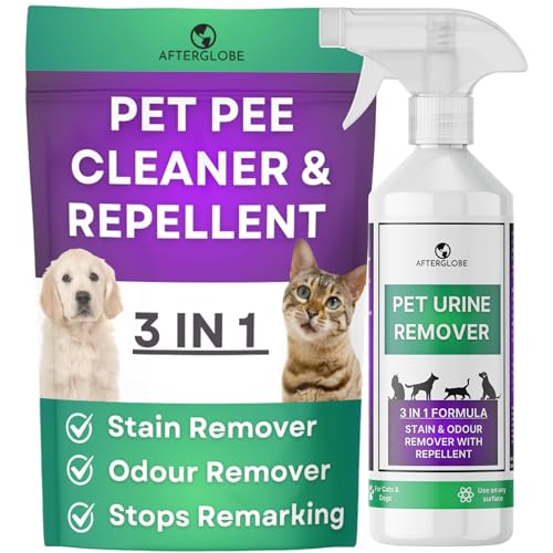 Afterglobe 3-in-1 Dog & Cat Urine Cleaner & Repellent for Carpets, Furniture and Flooring, Removes Pee Stains & Odour, Stops Repeat Marking in the House, Pee Smell Neutraliser for Pet Wee 500ml
