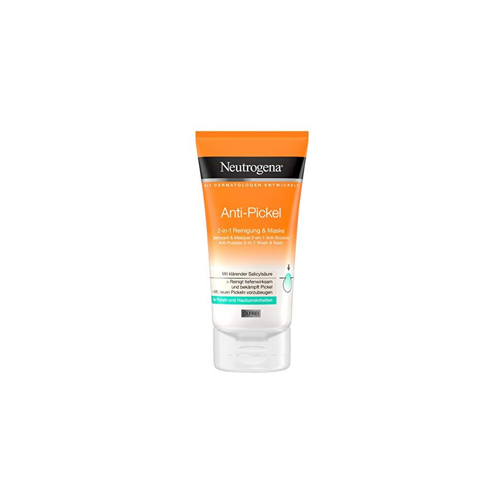 Neutrogena Anti-Pimple Facial Cleanser, 2-in-1 Cleansing and Mask with Salicylic Acid for Blemished Skin, Oil-Free, 150 ml