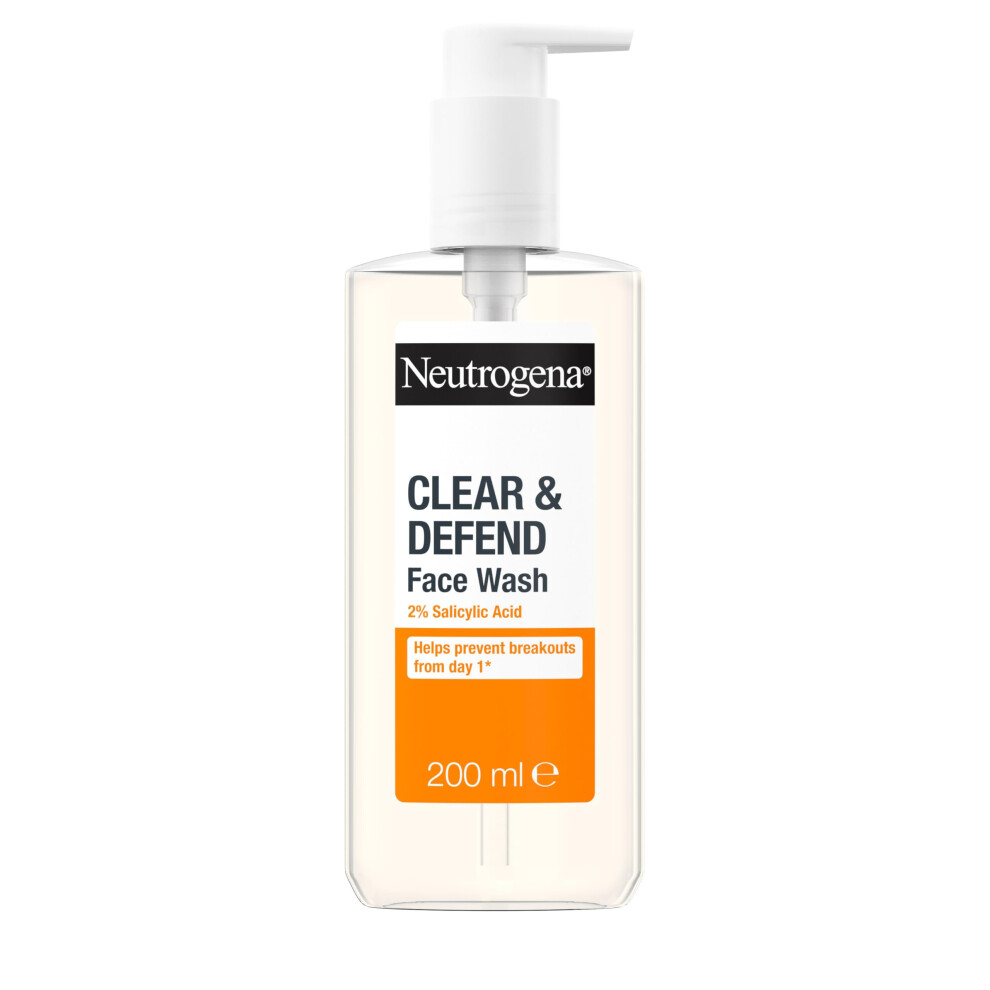 Neutrogena Clear & Defend Face Wash (1x 200ml), Oil-Free Facial Cleanser for Spot-Prone Skin, Facial Wash with Purifying 2% Salicylic Acid to Help Prevent Breakouts for Smoother, Clearer Skin
