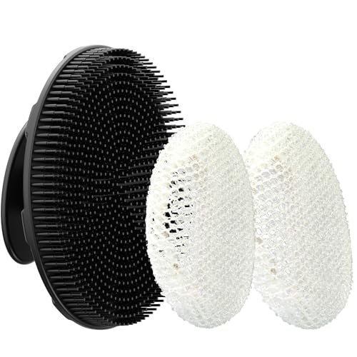 BEAUTAIL Silicone Body Scrubber Shower Bath Cleansing Brush Gentle Exfoliating Scrub Loofah for Women Men Baby Sensitive Skin, Easy to Clean, Lathers Well, More Hygienic, 1 Pack, Black