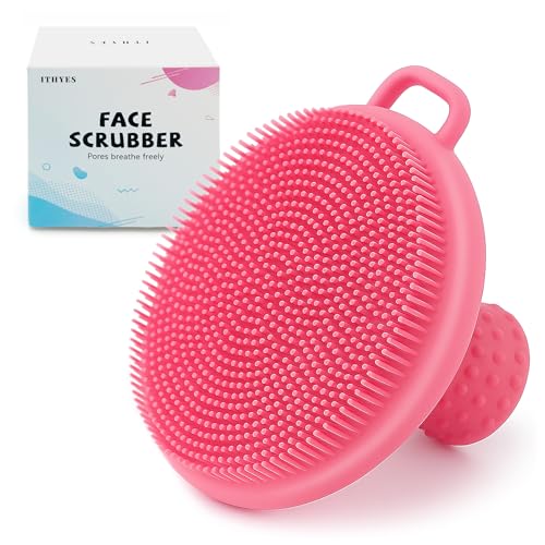 Ithyes Silicone Face Scrubber, Facial Cleansing Brush,Men's face Brush,Gentle Exfoliation and Blackhead Removal for Men and Women, Suitable for Sensitive Skin,Face Exfoliator Tool,1Pack (Pink)